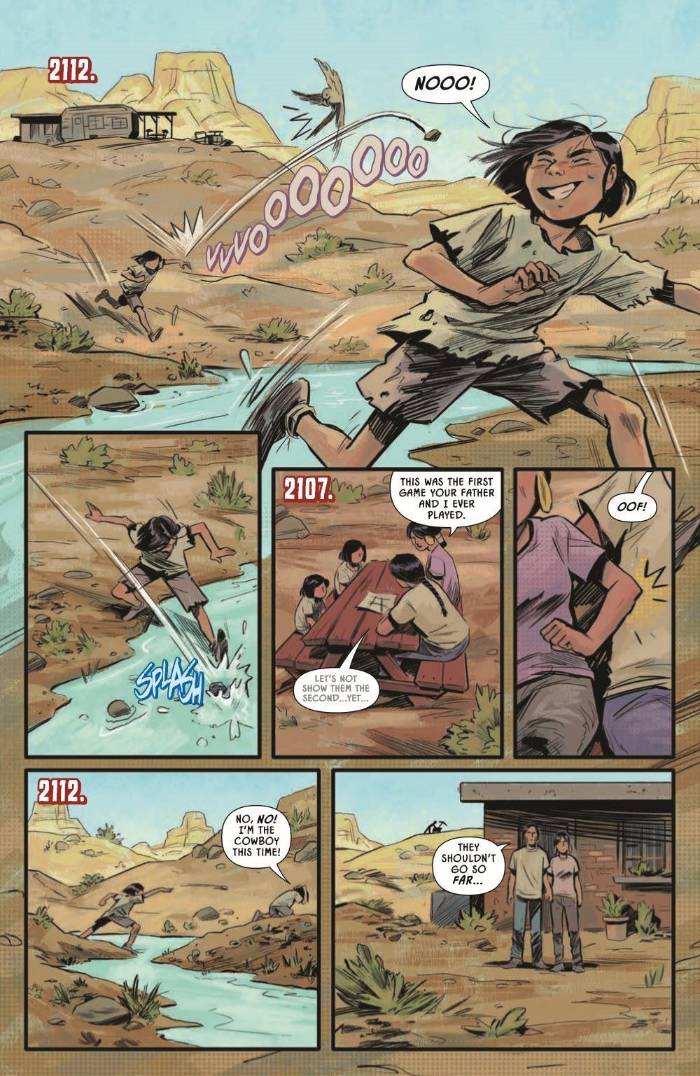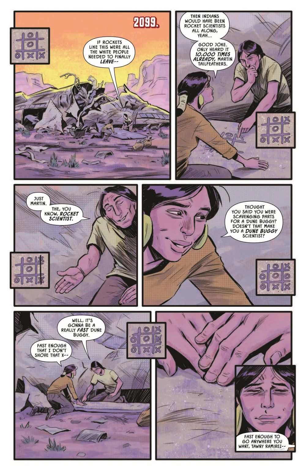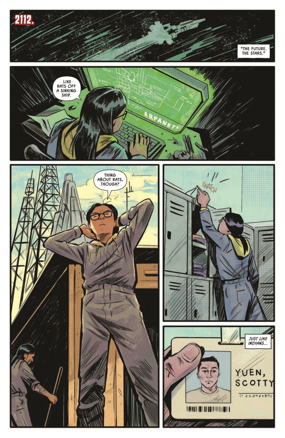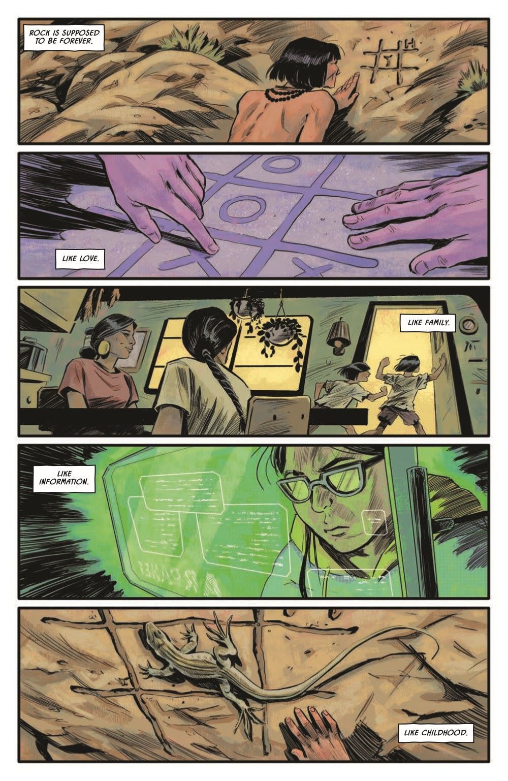 This is where our story really begins. Before the mission to kill Christopher Columbus, soon-to-be time travelers Emily, Tad, Sosh, Tawny, and Martin were enduring the end of the world…and ringleader Yellow Kid was taking his first unscrupulous steps to bring them all together to save it. This tragic hidden chapter reveals how the Blackfeet computer genius discovered the cave that changed history and destroyed lives—an essential tale from guest artist Riccardo Burchielli, shedding light on Earthdivers secrets before Davide Gianfelice returns for a new arc in a new era next month!