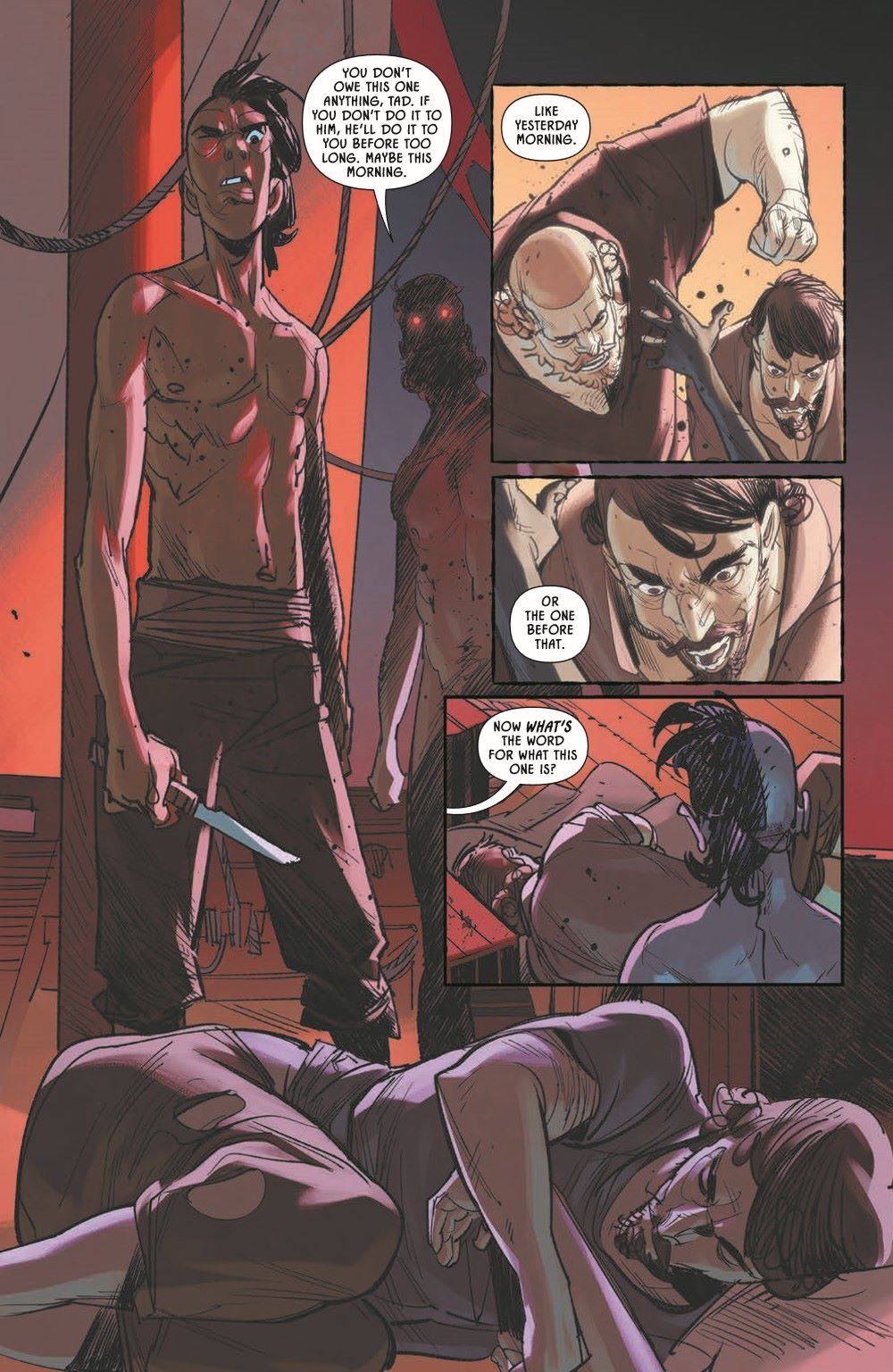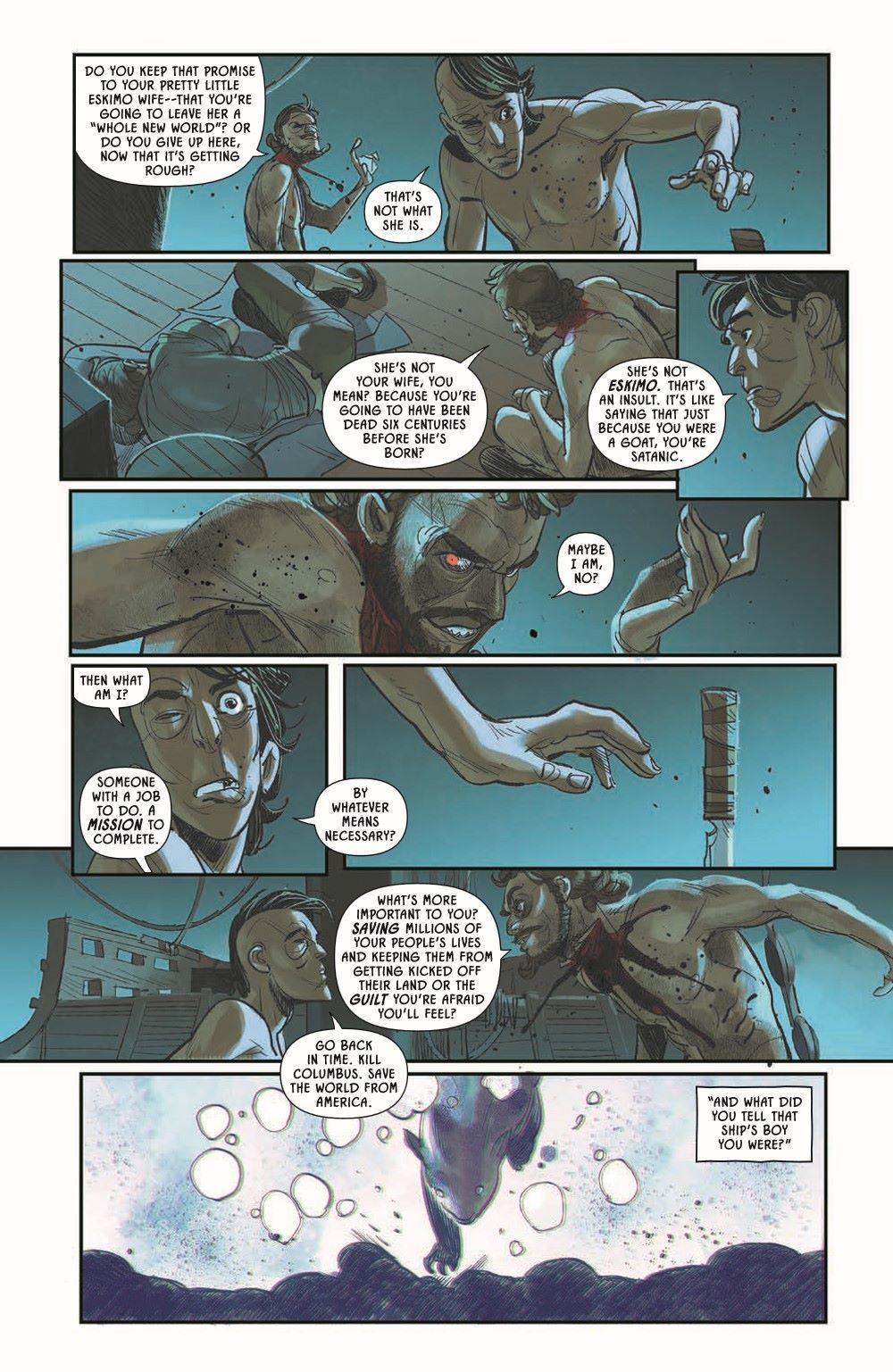 It's time to stop thinking and start cutting throats. Christopher Columbus' ships are weeks closer to landfall, and Tad has nothing to show for it. Battered and bruised after a string of slick but failed attempts to stop the mission's progress, Tad is ready to admit that history will never change if he doesn't spill blood—and he's too pissed off to care about collateral damage anymore. But even if he succeeds, his friends in 2112 look doomed as Emily fights for her life at the cave and Sosh confronts Yellow Kid about the unforgivable origins of their plan to save the world.
