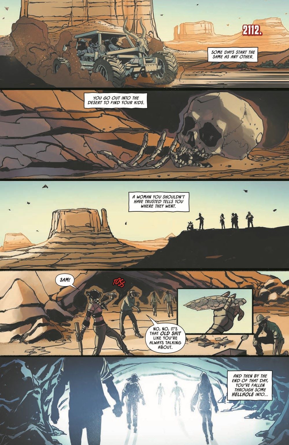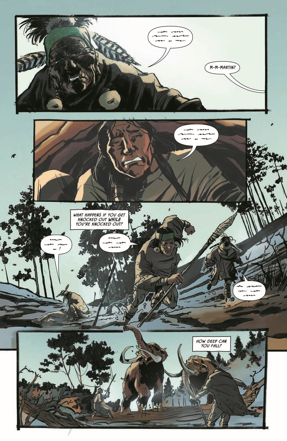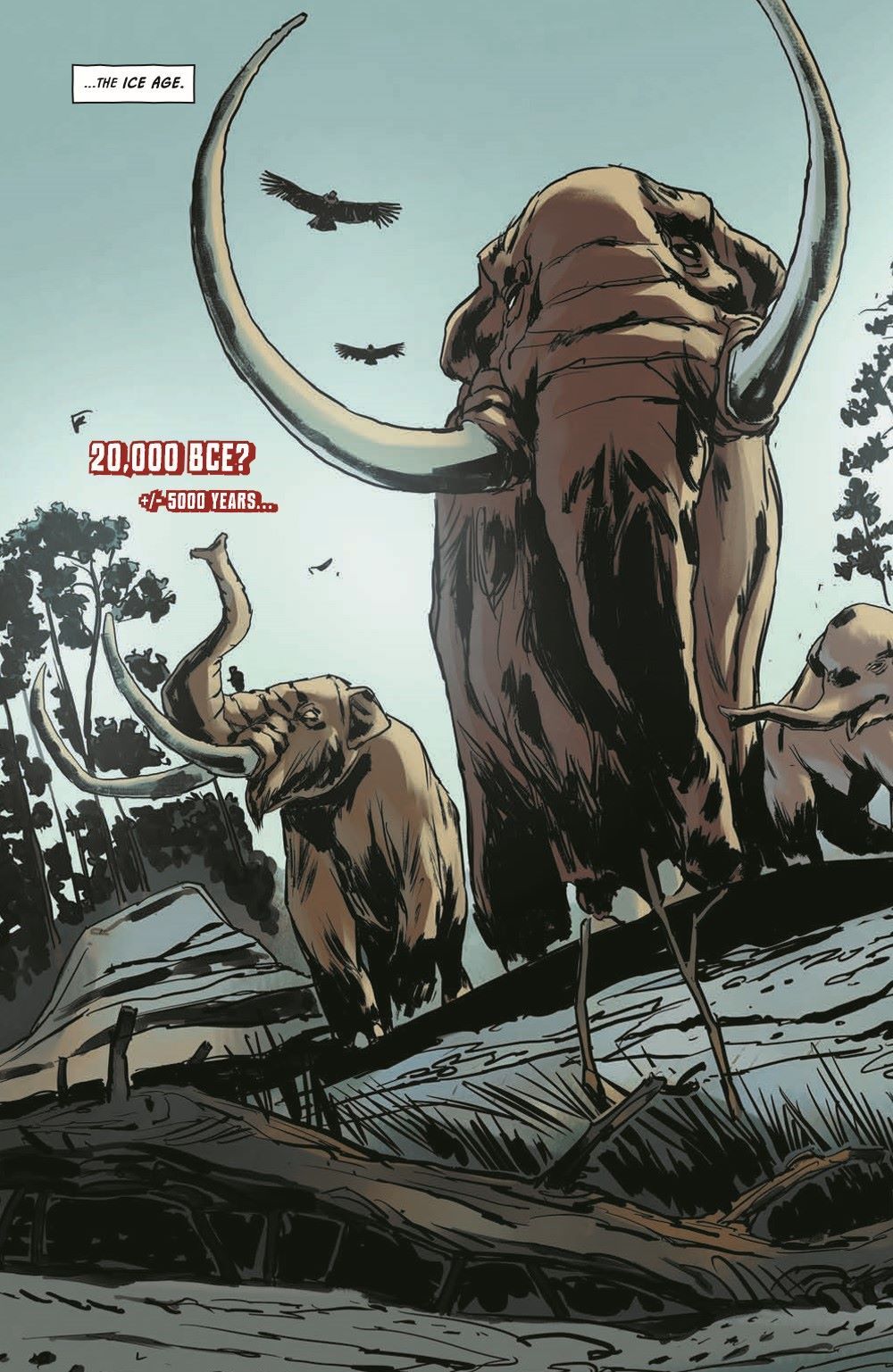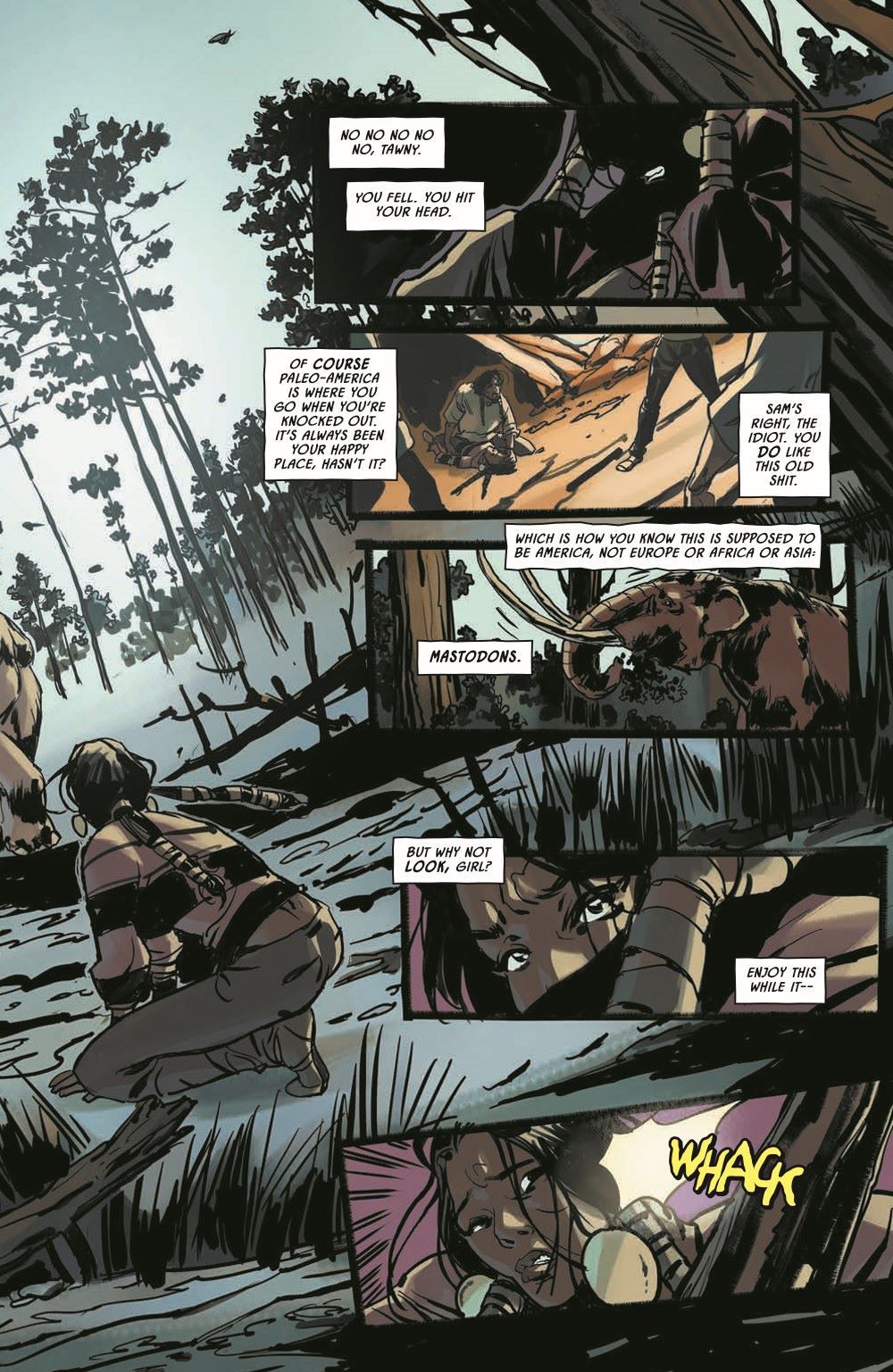 Guest artist Riccardo Burchielli (DMZ) joins Earthdivers, for a side mission to the Ice Age in the first of a four-issue mini-arc exploring America's pre-Columbian past! When Martin and Tawny's children disappeared, the couple barreled into the desert to track them down at any cost. Instead, they ran afoul of another group of rovers who claimed to be saving the world by traveling through a cave portal to the year 1492 to prevent the creation of America—an idea that defied belief until the grieving parents were lured into the cave and vanished in time and space. Now alone, Tawny must adapt to the wild marshlands of prehistoric Florida, circa 20,000 BC, and the breathtaking and bloodthirsty megafauna are the least of her problems when she's caught in a war between a community of native Paleo-Indians and an occupying Solutrean force. Tawny's odds of survival are in free fall, but she's a mother on a mission…and she's holding on to hope that the cave brought her here for a family reunion.