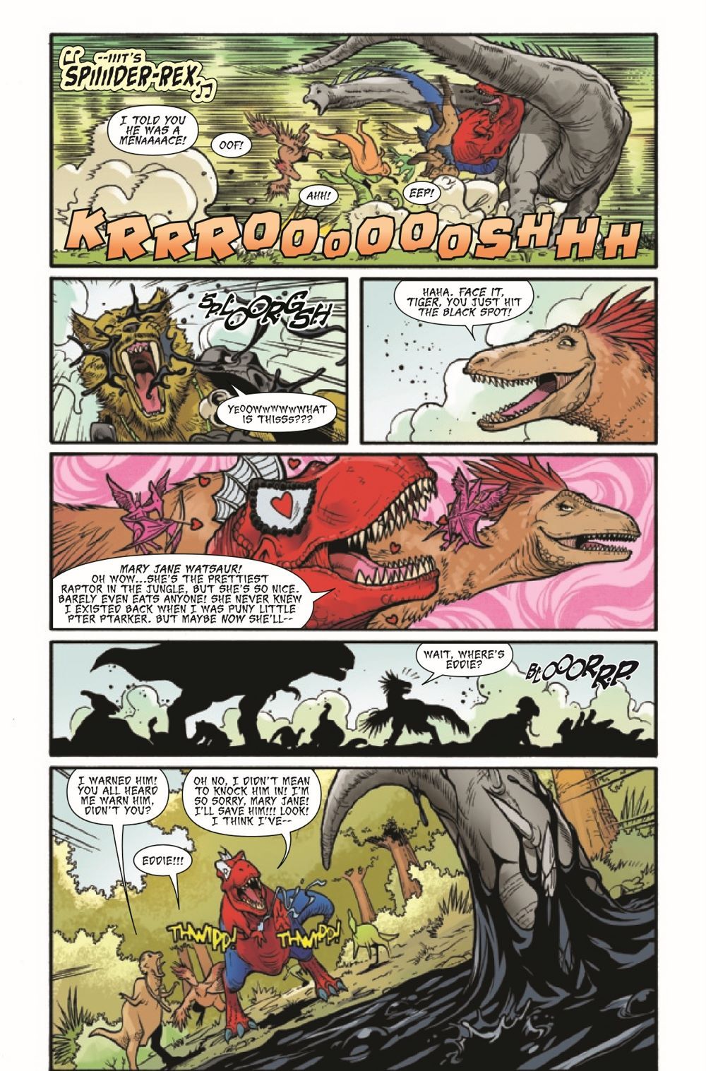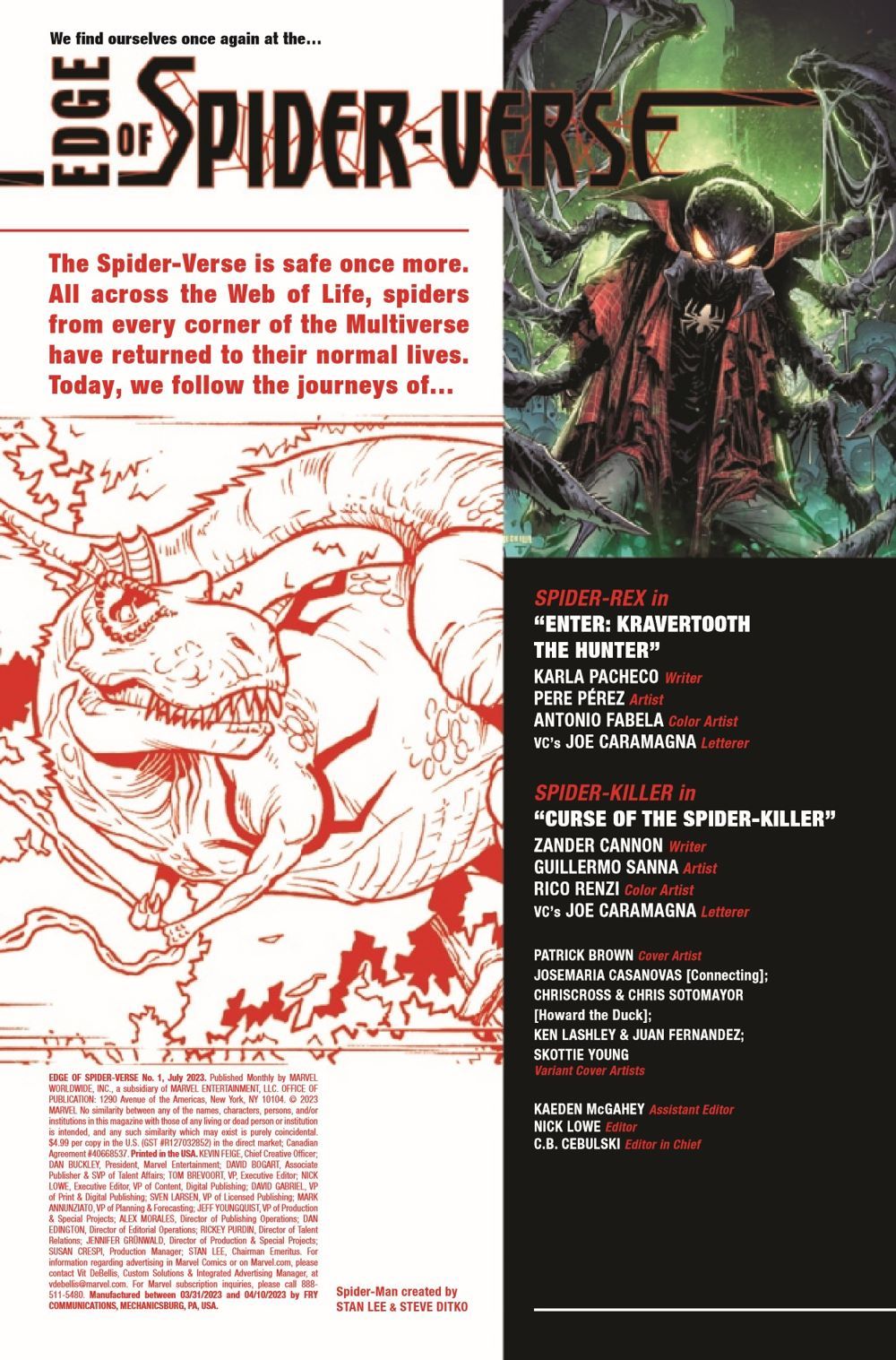 INTO THE OTHER EDGE OF THE SPIDER-VERSE! SPIDER-REX returns and faces the VENOMSAURUS! PLUS - WHO IS THE SPIDER-KILLER?! Zander Cannon introduces the world to the scariest Spider-Character EVER CREATED!!! Bringing your favorite breakout characters back, as well as introducing brand new Spiders who will blow your mind!