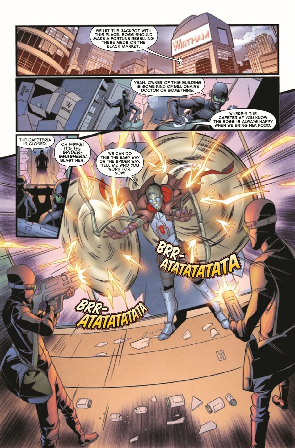 SPIDER-SMASHER RETURNS! After her hit debut in MILES MORALES: SPIDER-MAN, Miles' sister Billie Morales's alter ego is still needed in the Empire of the Spider! Plus, the origin of the secret Spider-Character who debuted in SPIDER-MAN #7 is told here!