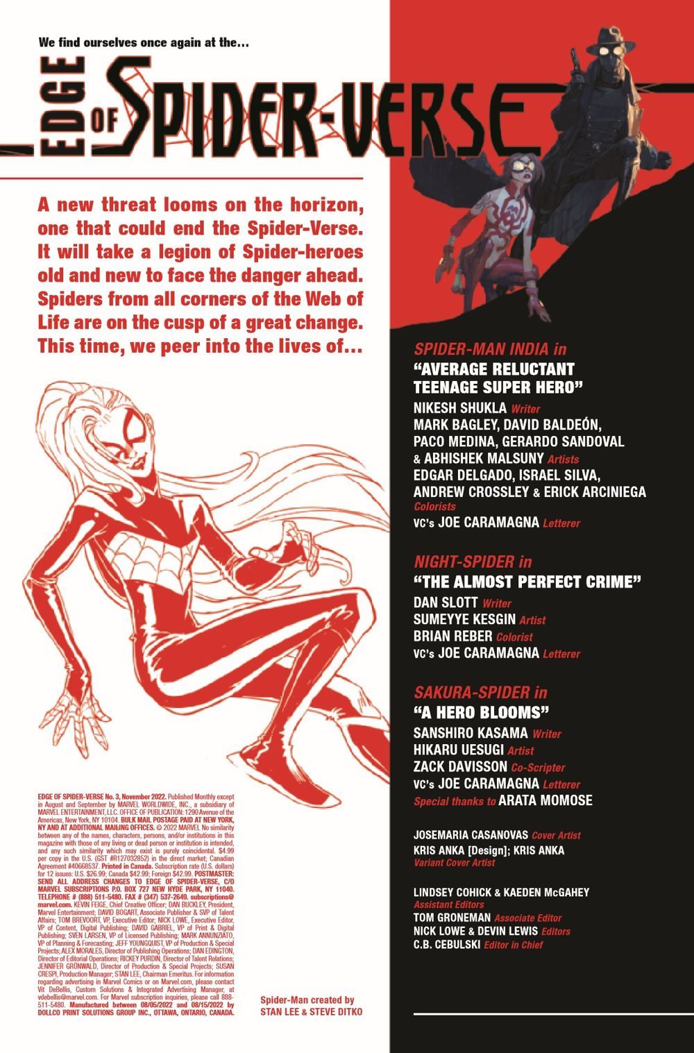 IN THIS ISSUE! SPIDER-MAN: INDIA! AND NIGHT-SPIDER! Wait, WHO IS NIGHT-SPIDER?! Featuring art from Hikaru Uesugi, Sumeyye Kesgin, and more!
