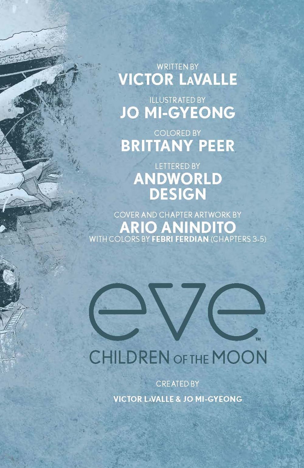 A new chapter of the bestselling Afrofuturist adventure, perfect for fans of Little Monsters! Eve already saved the world once, embarking on a perilous quest to protect what remained of humanity after a deadly virus outbreak… but the story continues! Selene, a source of hope for the many children that flocked to her rest stop, resents Eve, Eve's sister, and Wexler. The conflict amongst them and the survivors is dire… even sowing the potential for civil war. But an A.I. with terrifying origins from deep beneath the sea brings new revelations about the threats they face… not only of earth, but beyond. Eve and her companions face new challenges and a darkness from their past in this exciting sequel series from award-winning author and lauded professor Victor LaValle (The Ballad of Black Tom, Victor LaValle's Destroyer) and returning Eve artist Jo Mi-Gyeong (The Dark Crystal: Age of Resistance). Collects Eve: Children of the Moon #1-5.