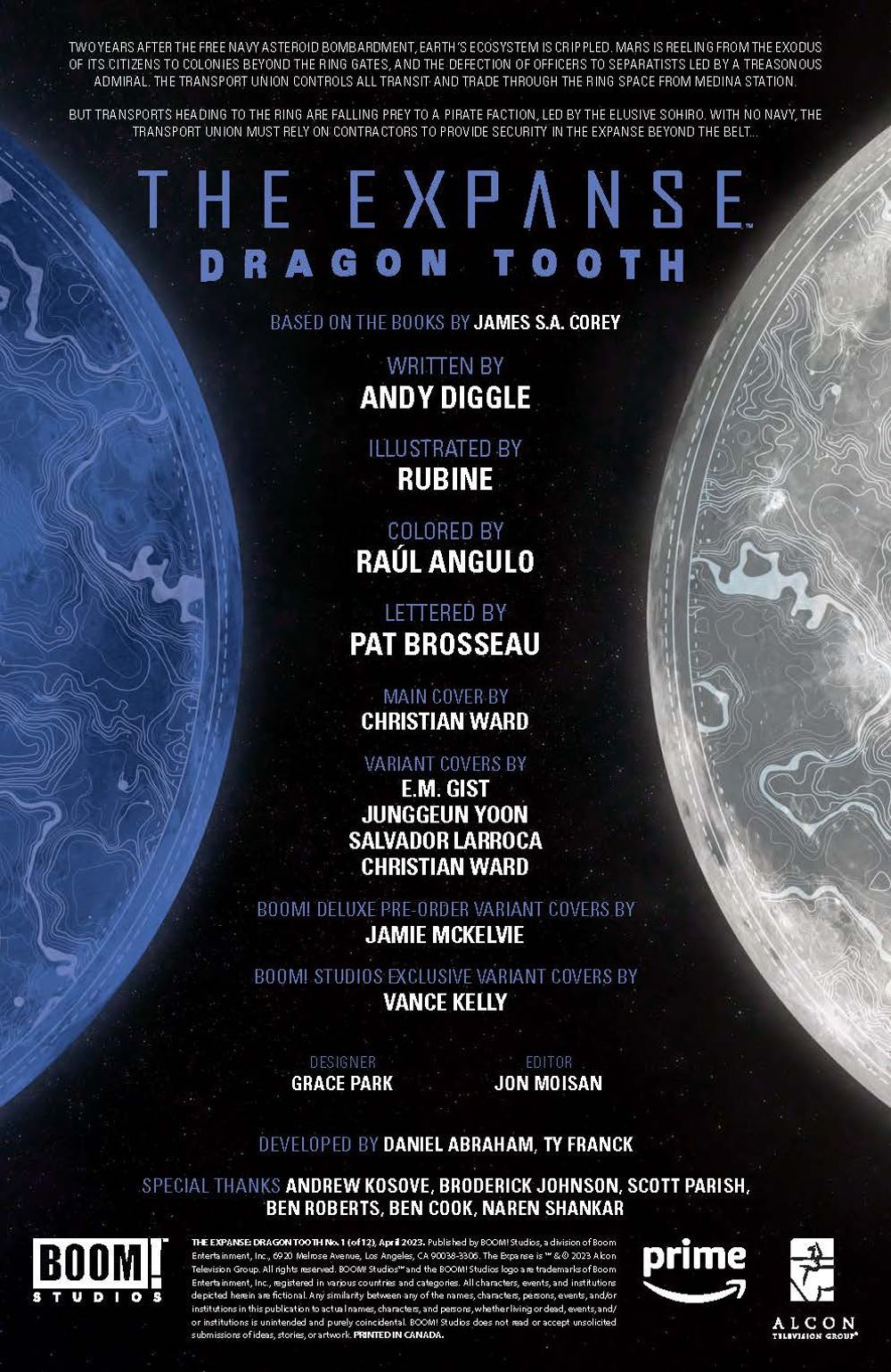 NEW SERIES. Attention Beltalowda! The Expanse officially lives on at BOOM! Picking up after the final season of the acclaimed and beloved sci-fi series and filling in the missing years between The Expanse: Babylon's Ashes and The Expanse: Persepolis Rising, the secret history of your favorite characters are revealed for the first time! Everything comes together in this epic 12-issue story, tying together the threads of the show and answering lingering questions that will bring readers and viewers alike far beyond the stellar horizon. Across this monumental maxi-series, superstar comics writer Andy Diggle (Green Lanterns, James Bond) and artist Rubine (Voltron: Legendary Defender) broadens The Expanse universe in ways that will change how fans view the entire series forever!