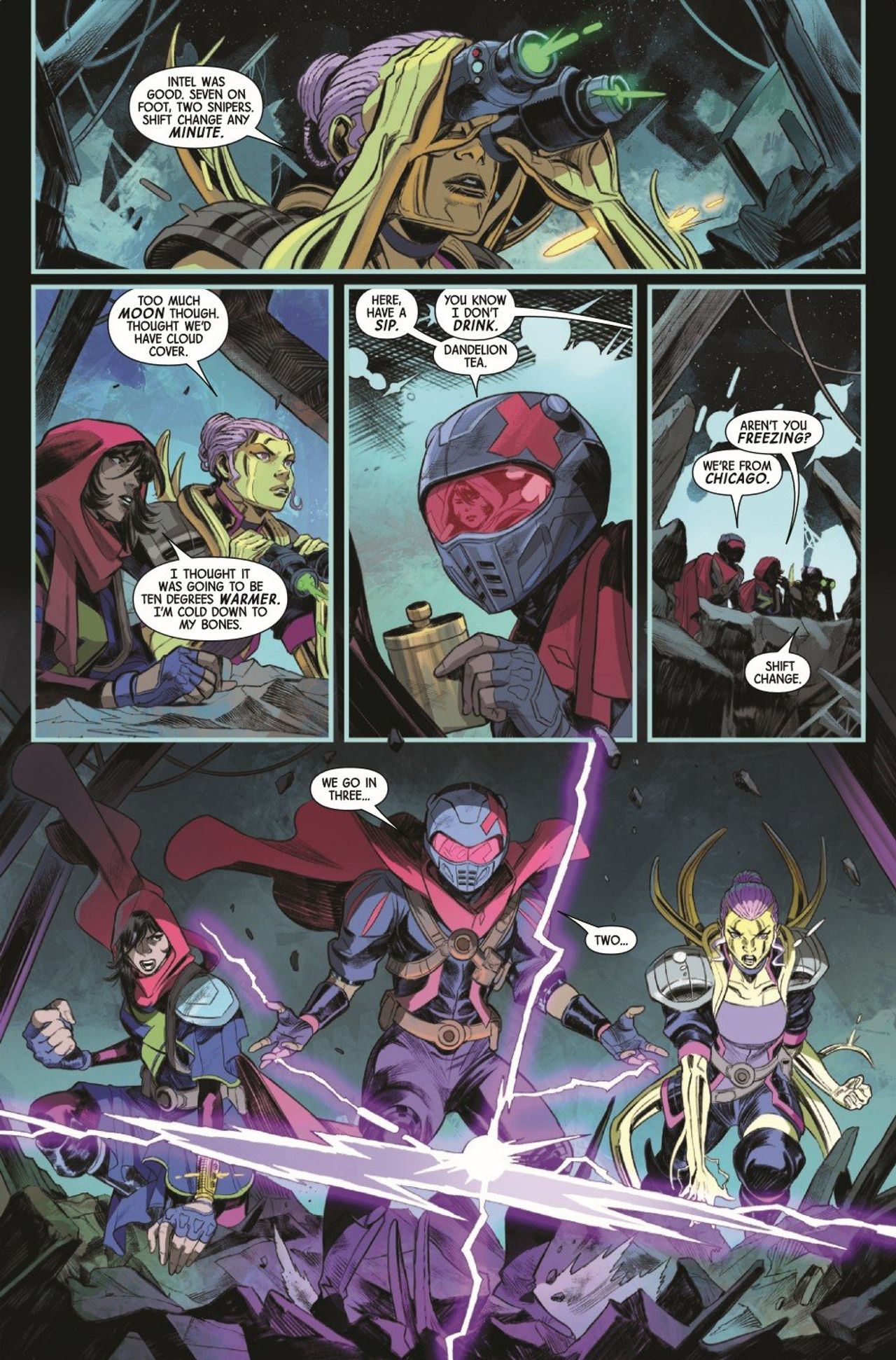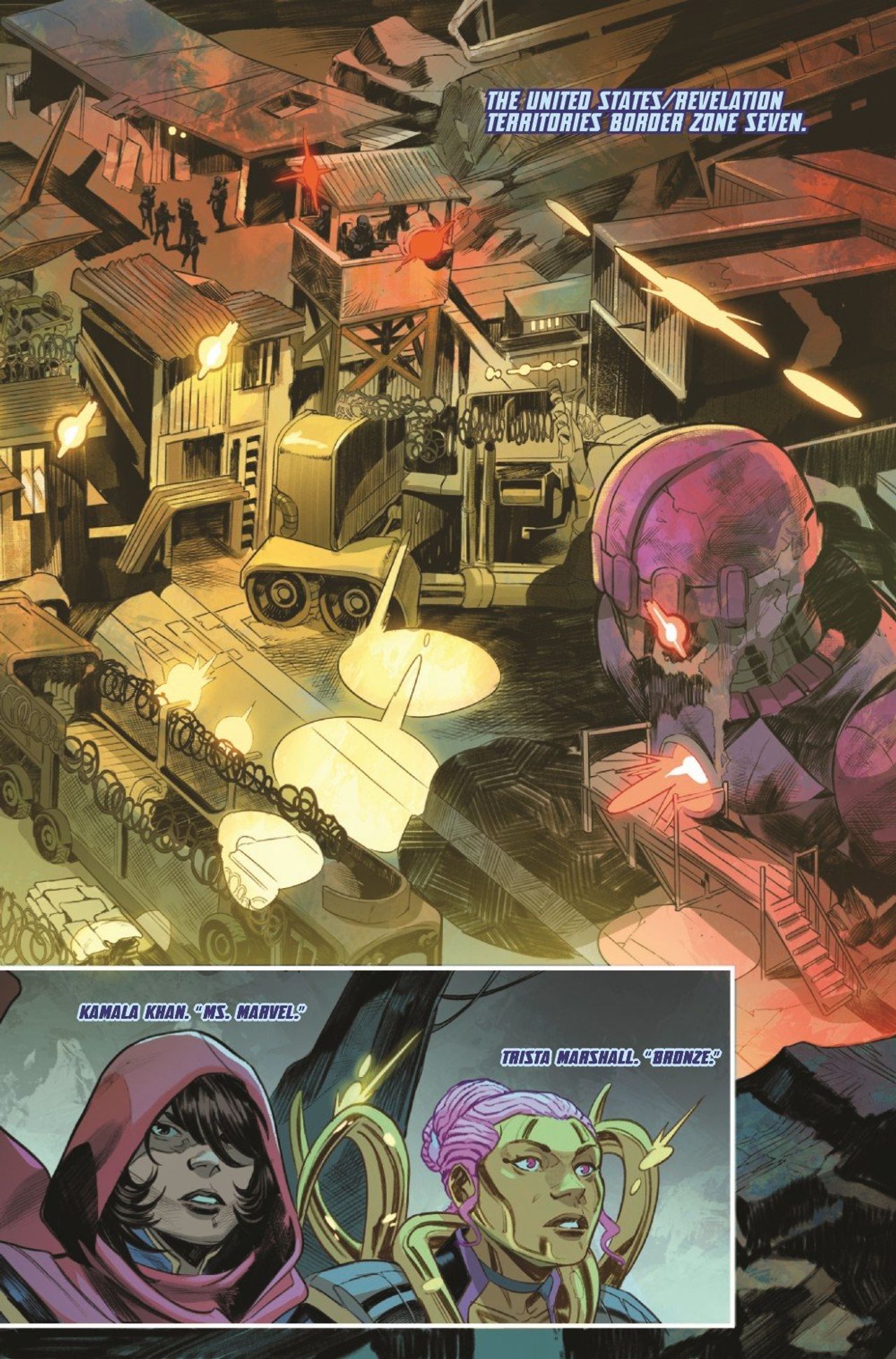 UNITED BY WAR! X YEARS LATER, like the fallen and reassembled United States, the new team of MS. MARVEL, BRONZE, MELEE and RIFT rises! They have seized control of the Mississippi River waters that divide mutantkind from the rest of humanity. Feared and powerful, their guerrilla tactics keep them in control - until a high-stakes mission to extract a valuable asset threatens to tear them apart. Can they hold together when everything's on the line?