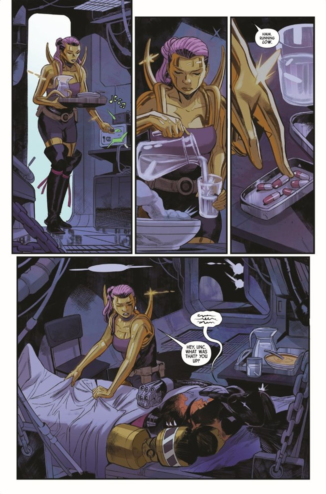 GUERRILLA WARFARE! X YEARS LATER, BRONZE, MS. MARVEL, RIFT, MELEE and their guerrilla flotilla make their way upriver, evading the surveillance of both REVELATION and the U.S. Army. It's clear that their recently rescued charge LYREBIRD is not who he seems to be. And withholding some details leaves his life on the line, as the team approaches the LIMBO LANDS...and the truth.