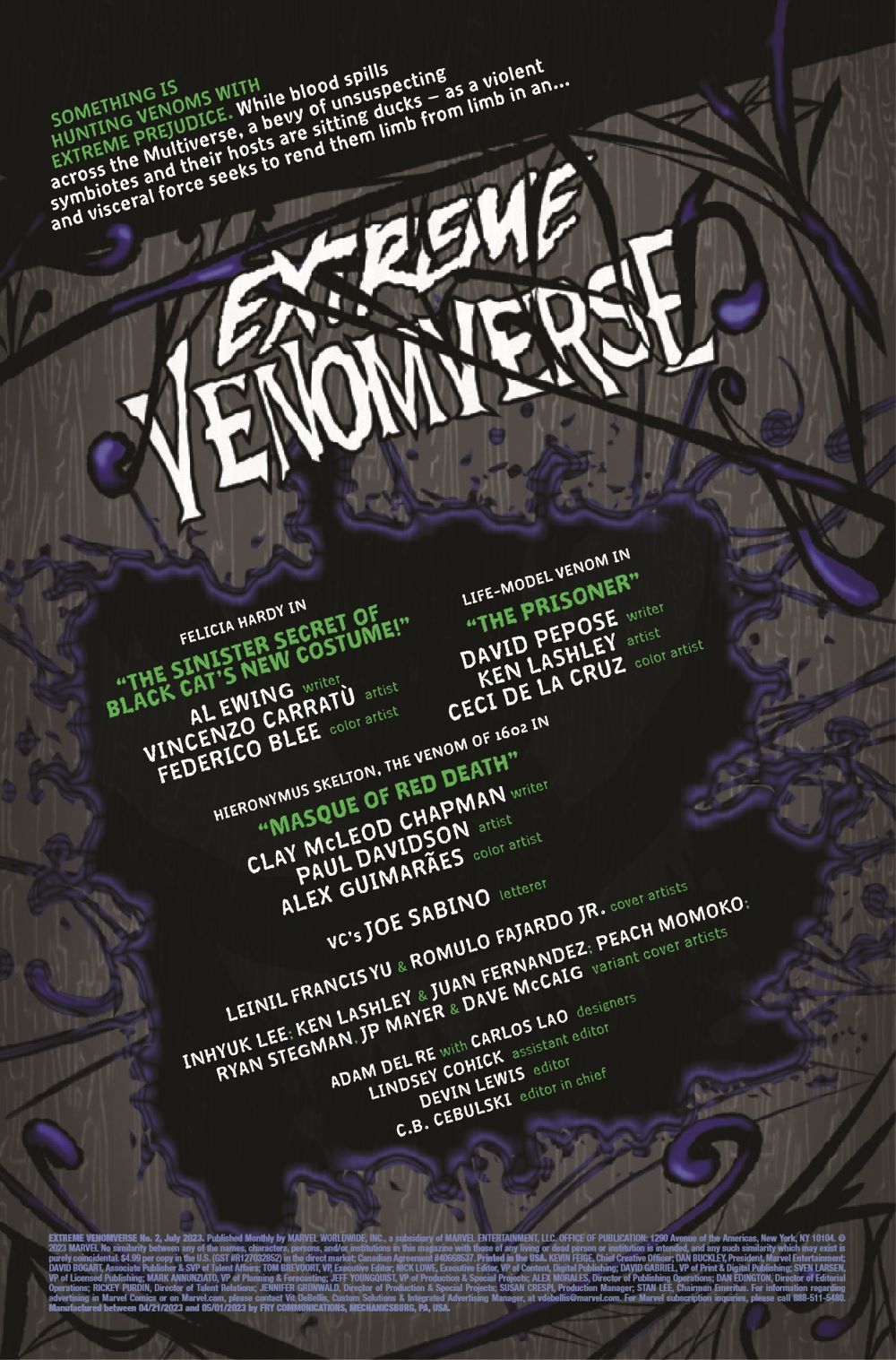More VENOMOUS symbiotes enter the fray! The summer of symbiotes continues to weave its tendrils through the Marvel multiverse as even more never-before-seen Venoms bear their fangs for the very first time! VENOM scribe Al Ewing and artist Vincenzo Carratù (MARY JANE & BLACK CAT) unite to tell a purrfect tale about your favorite cat burglar and a certain heist she may have pulled on Marvel's First Family! Revisit MARVEL: 1602, with Clay McLeod Chapman and Paul Davidson, as they introduce the creepiest Venom EVER! David Pepose and Ken Lashley introduce you to what we're calling the L.M.V.: LIFE-MODEL VENOM! Cyborg Spider-Man, eat your heart out!