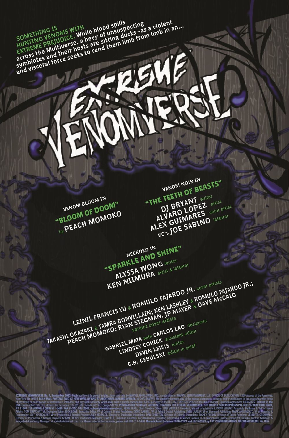 Face front, Venomaniacs, because we've got even MORE never-before-seen and ALL-NEW symbiote stories to show you! First, Deadpool scribe ALYSSA WONG and revolutionary artist KEN NIIMURA unite to introduce a symbiotic superstar inspired by anime and manga who's about to take the Multiverse by storm! Then industry superstar PEACH MOMOKO is about to make your skin crawl, with a tale of some fearsome flora the likes of which you've never seen! Move over, Groot, there's a NEW plant in the spotlight of the Marvel U, and this one's a KILLER! And lastly! VENOM NOIR! You've heard of Spider-Man Noir - now meet his totemic and terrible opposite as this reality's symbiotic hive gets explored for the very first time!