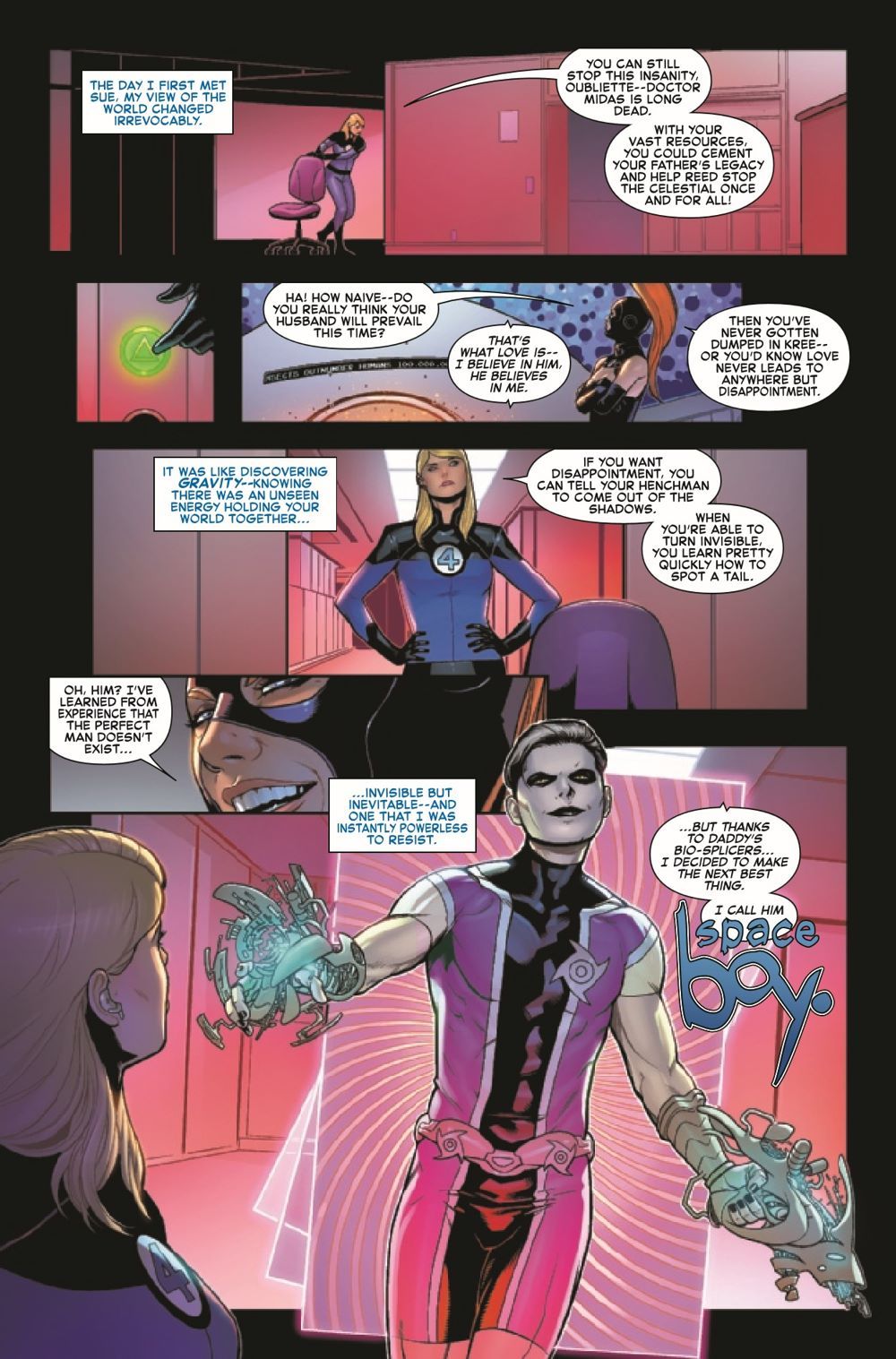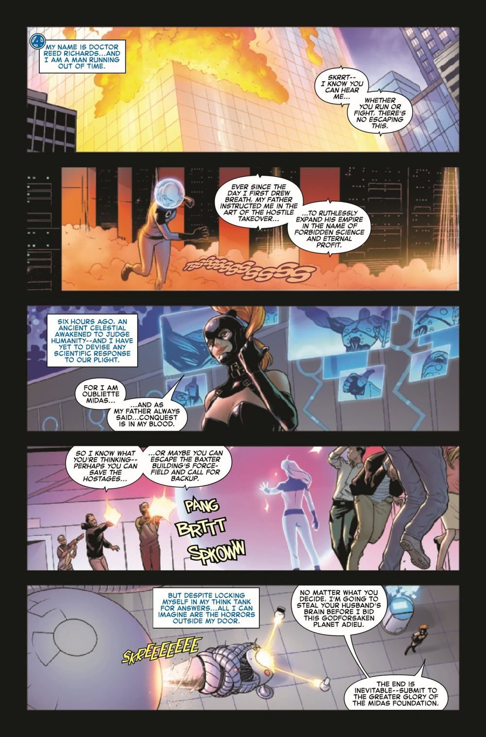 AN A.X.E. TIE-IN! Trapped alone inside the Baxter Building with no backup in sight, the Invisible Woman battles her way up 35 flights of death traps to stop the mad science of OUBLIETTE MIDAS! But with the clock running out on the Celestial's judgment, can Sue save her husband, Reed, from becoming the latest cog in the Exterminatrix's interdimensional war machine? Can the Thing and the Human Torch free themselves from Oubliette's twisted schemes, or will the hijacked Baxter Building prove to be the FF's ultimate undoing? It's Judgment Times Four, as the Fantastic Four don't plan to go down without a fight!