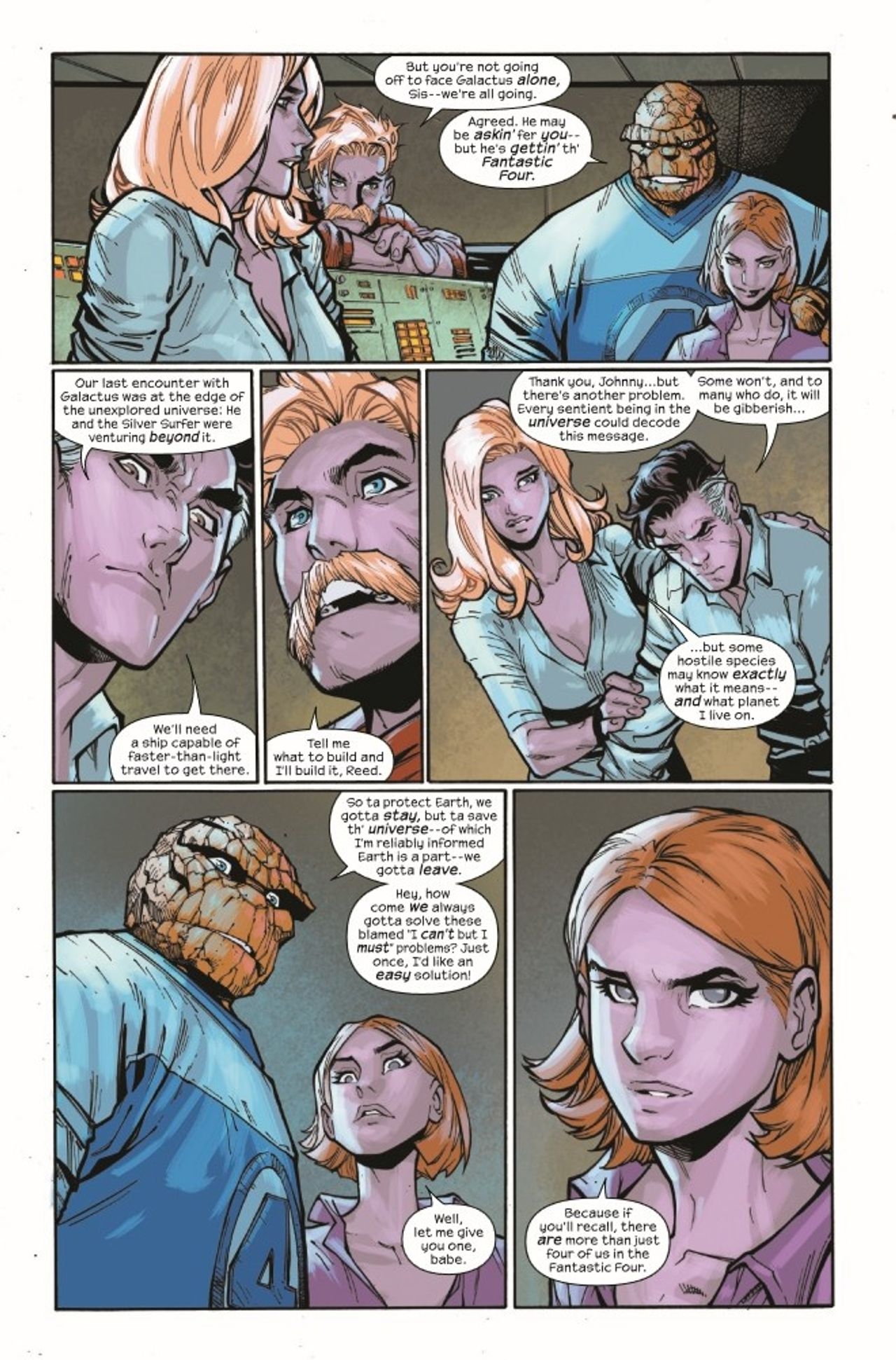 THE INVINCIBLE WOMAN, PART TWO! With a message hidden in the structure of the reality itself decoded, the Fantastic Four discover that Sue Storm has just become the most wanted woman in the universe. And that makes both her - and planet Earth - a target for invasion! Seeking to save both their planet and themselves, the Fantastic Four build a fantastic new spacecraft to voyage into the unknown. But this necessarily means that their world - and their families - are left undefended. Making matters worse, the Fantastic Four aren't the only ones who've found this message. There are forces here on Earth looking to take advantage... Plus: the JUNIOR FANTASTIC FOUR!