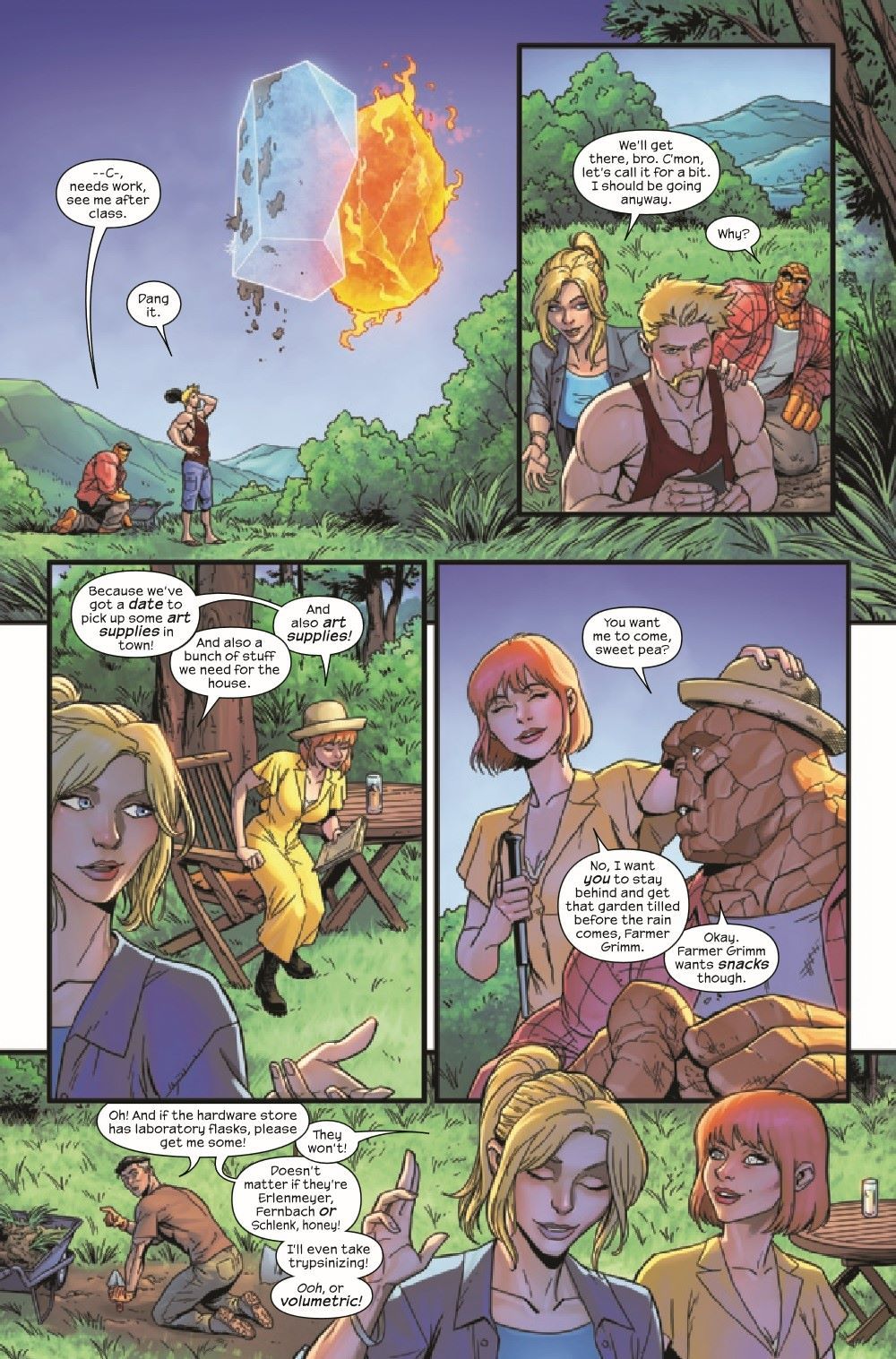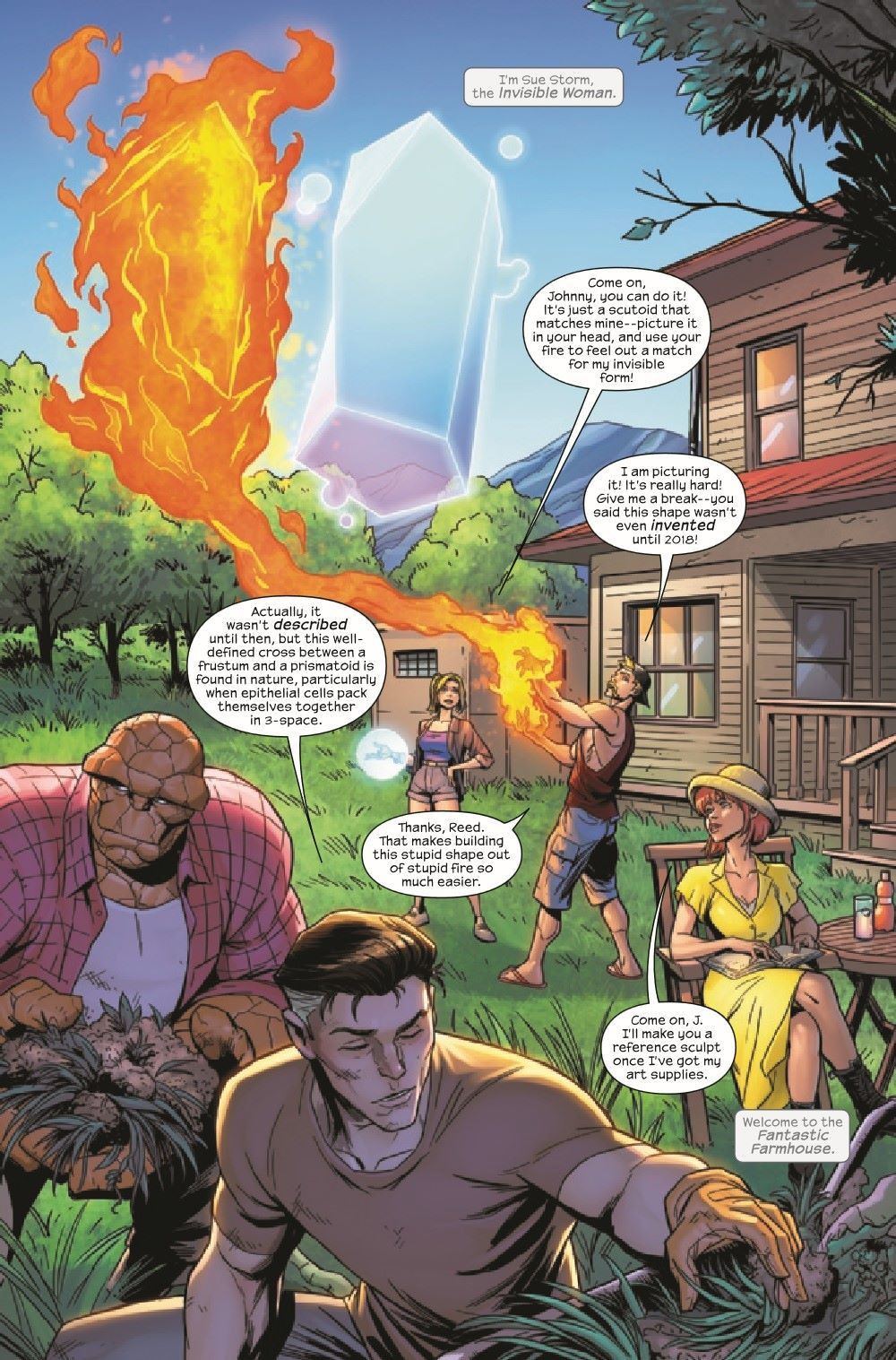 The Fantastic Four are finally settling into their new normal... but something very ABNORMAL is happening outside their farmhouse. Sue and Alicia get to spend some quality time together in town, but when they return, everything is not how they left it... ...and a very different Fantastic Four are left in their place! It's Sue and Alicia versus the world - and the start of a special two-part story!