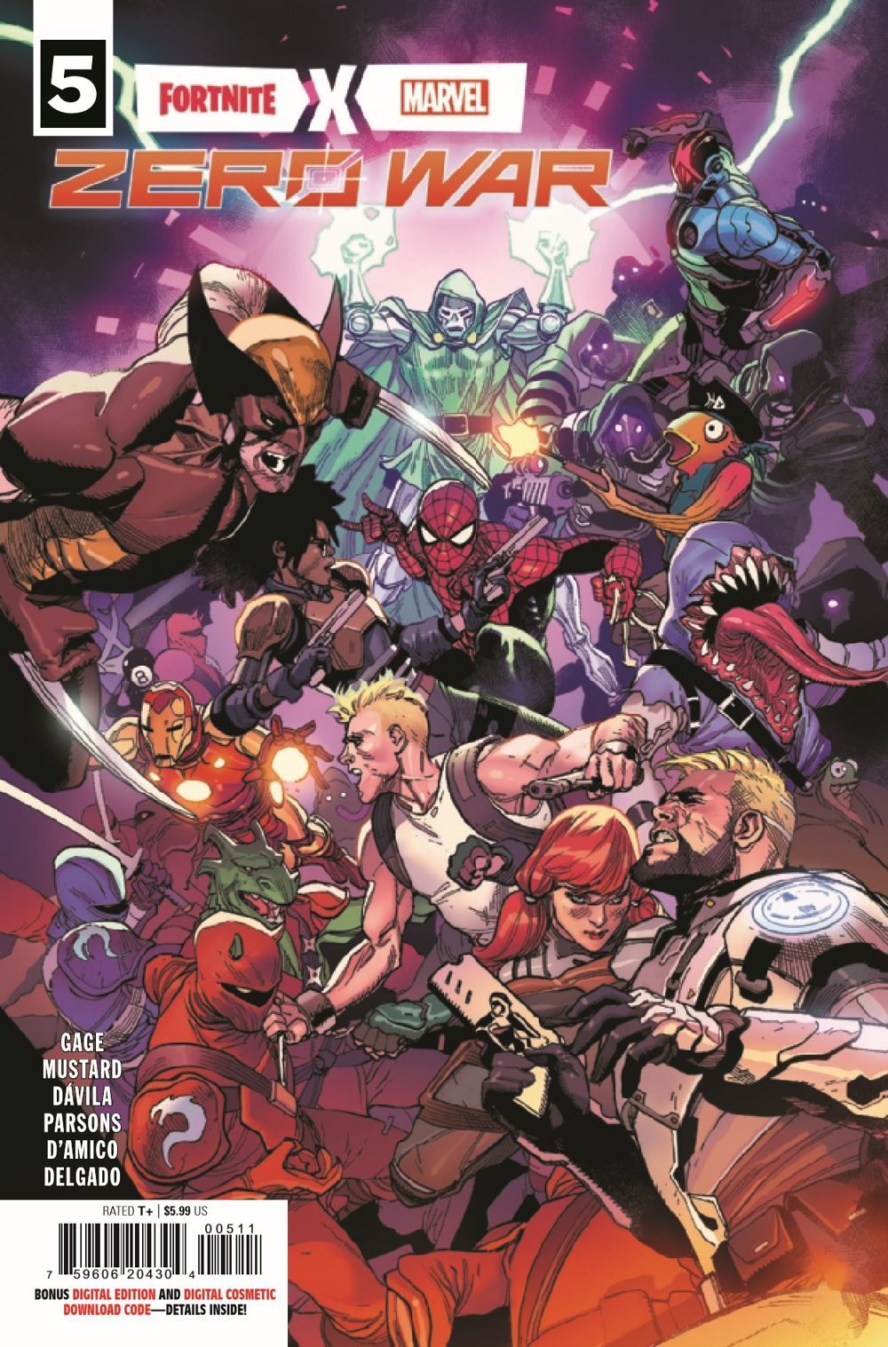 The most dangerous person in the Marvel Universe has thrown in with some of the most dangerous people in the Fortnite universe. But what does Doom really want? And how far will he go to get it? Each first print issue contains a redeemable code to unlock a bonus digital cosmetic in Fortnite! See issue for details.