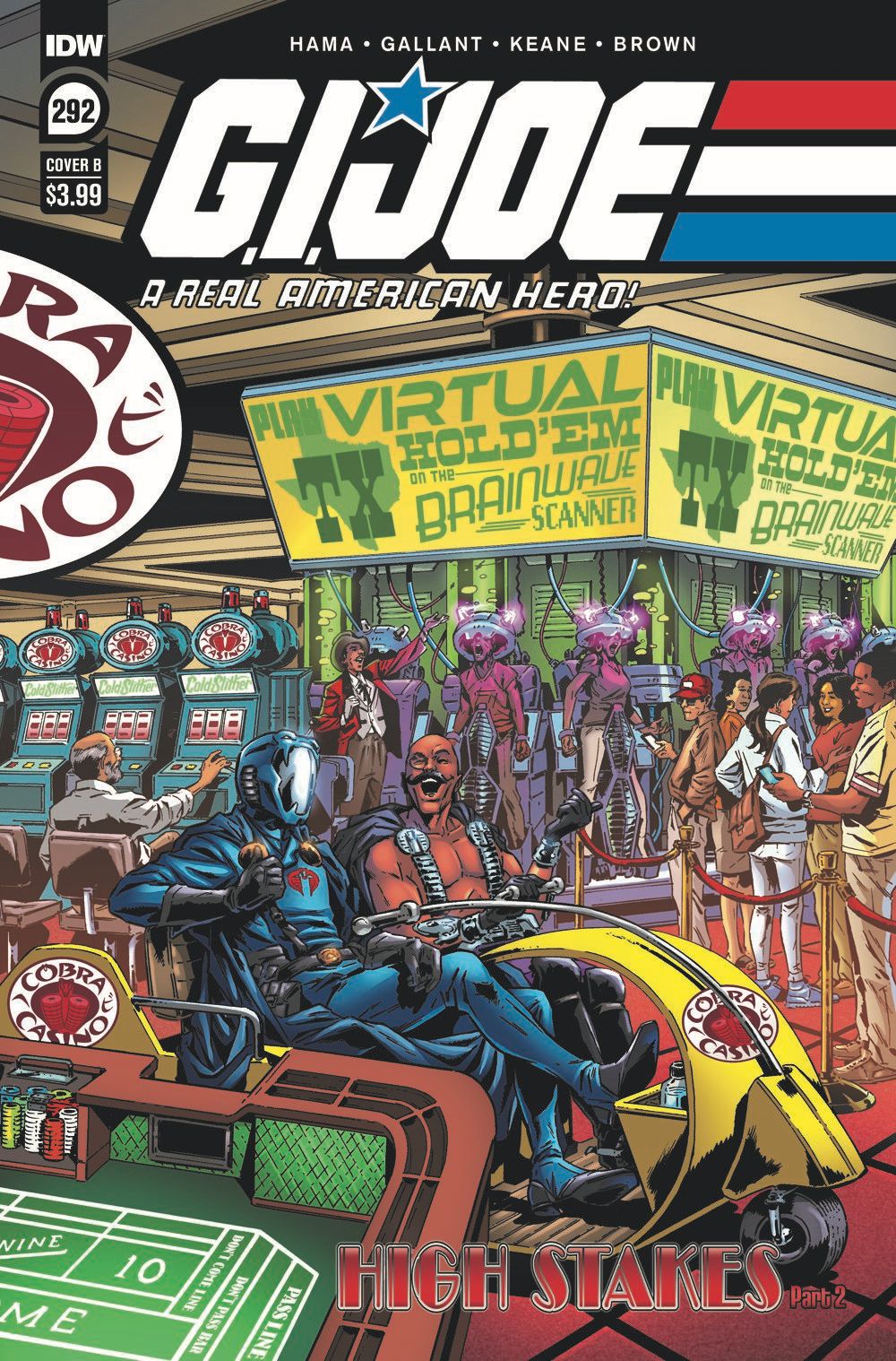 HIGH STAKES Part 2! The next great G.I. Joe: A Real American Hero event continues here! As Cobra remains busy establishing its corrupt casino operations on Cobra Island, the warriors of G.I. Joe are equally busy attempting to covertly infiltrate their arch-enemy's latest evil scheme. New and classic heroes and villains will fill the pages (including some shocking appearances!) as the fan-favorite creative team of Living Legend Larry Hama and SL Gallant continue their daring march to issue #300 here!