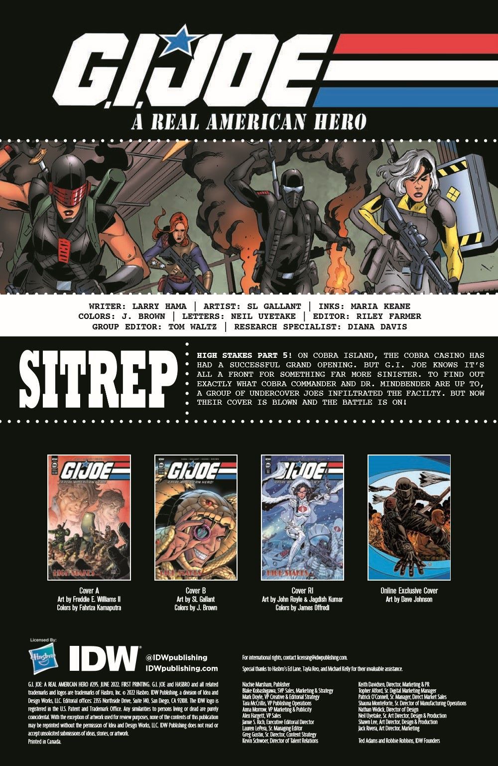 All-In, Part 3! The final G.I. Joe: A Real American Hero story arc at IDW Publishing continues! Using a brand-new casino on Cobra Island as a front, Cobra has been busy behind the scenes resurrecting dangerous villains and heroes alike, all in the hope of creating the deadliest Cobra army ever! It'll be up to the warriors of G.I. Joe to foil their archenemy's evil machinations before it's too late. The game for the fate of the world is barreling to a calamitous conclusion, and it's time for every single player to go…ALL-IN! New and classic heroes and villains will fill the pages (including some shocking appearances!) as the fan-favorite creative team of Living Legend Larry Hama and SL Gallant continue the final treacherous march to issue #300!