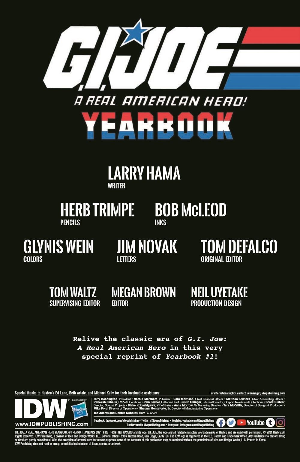 Relive the classic era of G.I. Joe: A Real American Hero in this very special reprint of Yearbook #1! From the prolific imagination of Living Legend Larry Hama, the yearbook features the epic tale "Operation: Lady Doomsday," as well as tons of amazing extra materials, and is a must-have for long-time collectors and new fans alike. Includes a brand-new cover by modern-day superstar G.I. Joe: ARAH artist Netho Diaz!