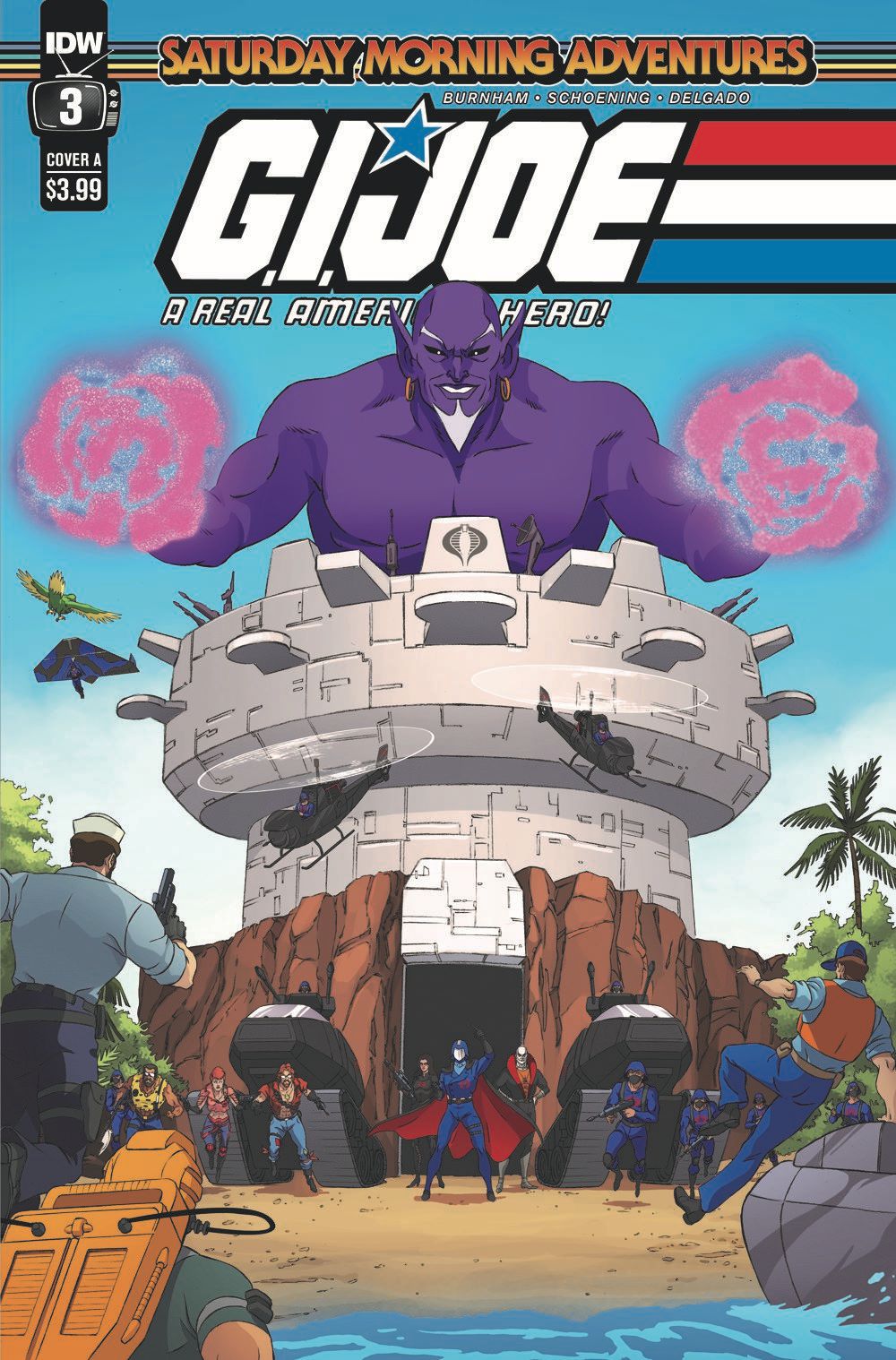 G.I. Joe has tracked down Cobra's new island base-and is making plans to invade! The Joes are determined to rescue Duke and regain everything that Cobra stole during their recent attacks in France, Japan, and the United States. Meanwhile, Cobra Commander's temper leads to a misuse of his new source of power, one that might just expedite a showdown between his ruthless organization and America's elite special mission force! Join us for the penultimate chapter of this four-part storyline, "A Little Island Getaway!"