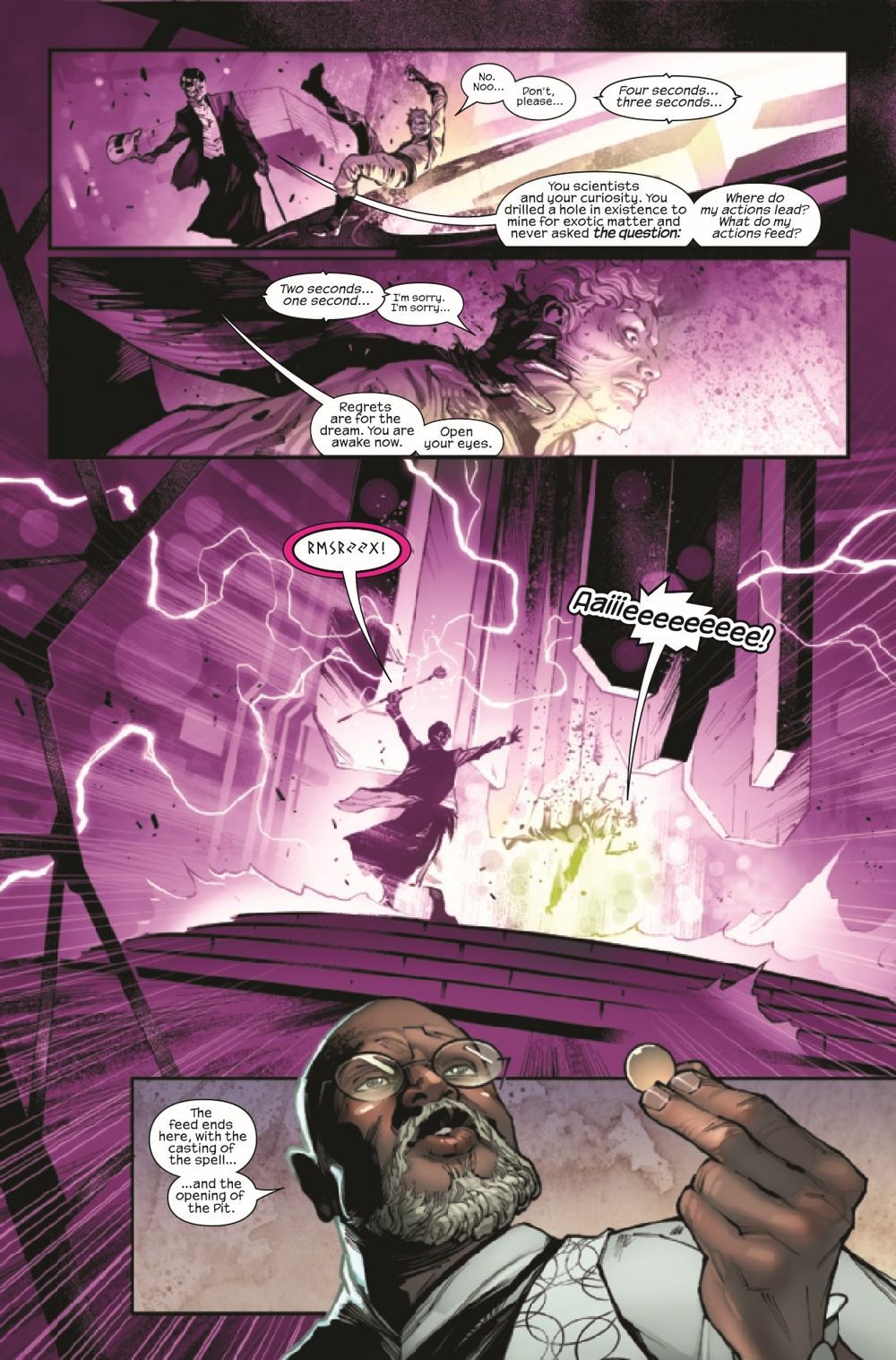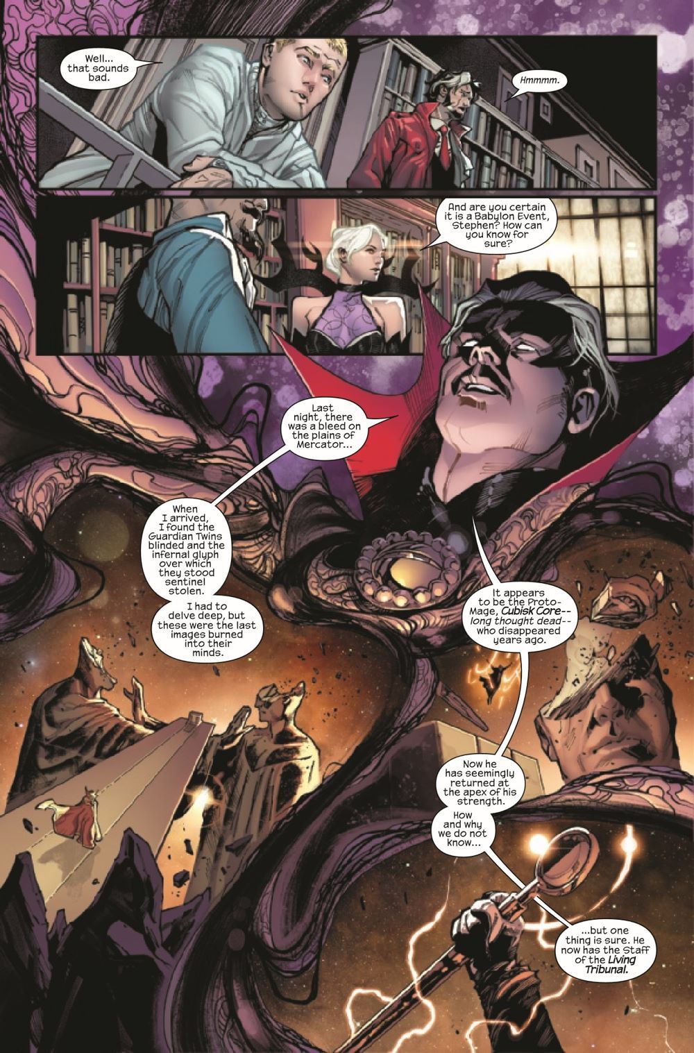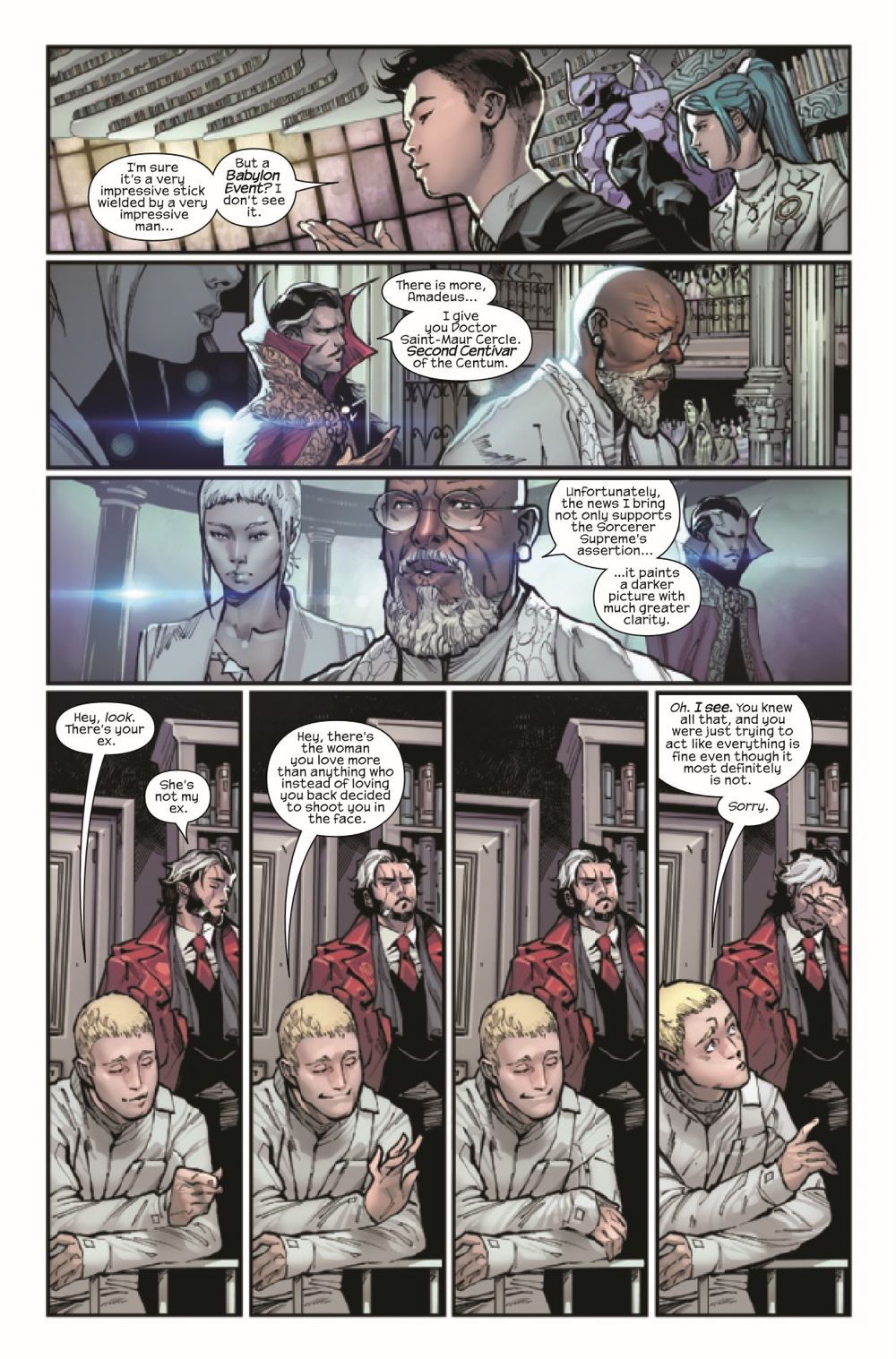 JONATHAN HICKMAN RE-INVENTS THE COSMOLOGY OF THE MARVEL UNIVERSE! WHAT HAPPENS WHEN THE-POWERS-THAT-BE MEET THE-NATURAL-ORDER-OF-THINGS? The infinite détente between THE-NATURAL-ORDER-OF-THINGS and THE-POWERS-THAT-BE nears an end. Old acquaintances are reunited during a Babylon Event. The Lion of Wolves throws the worst parties. Don't look under the table. There's a John Wilkes Booth penny on the ground. This ENORMOUS EXTRA-SIZED first issue features DOCTOR STRANGE, who, while not boring at all, is easily the most boring person in the book.