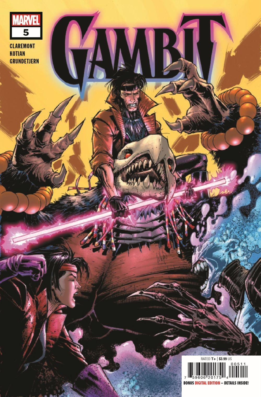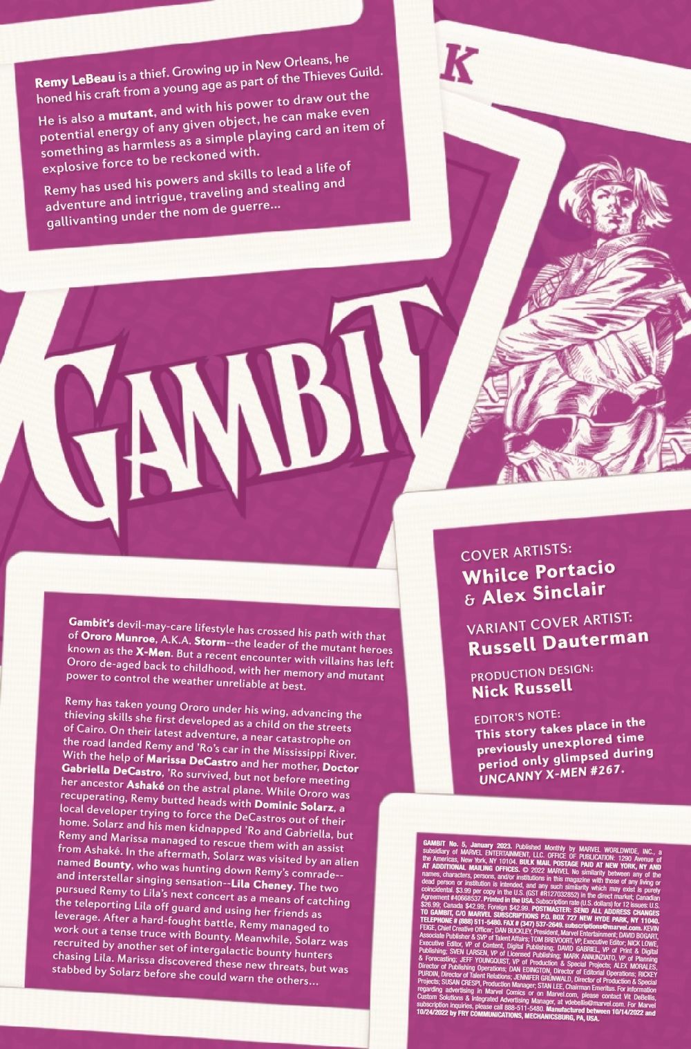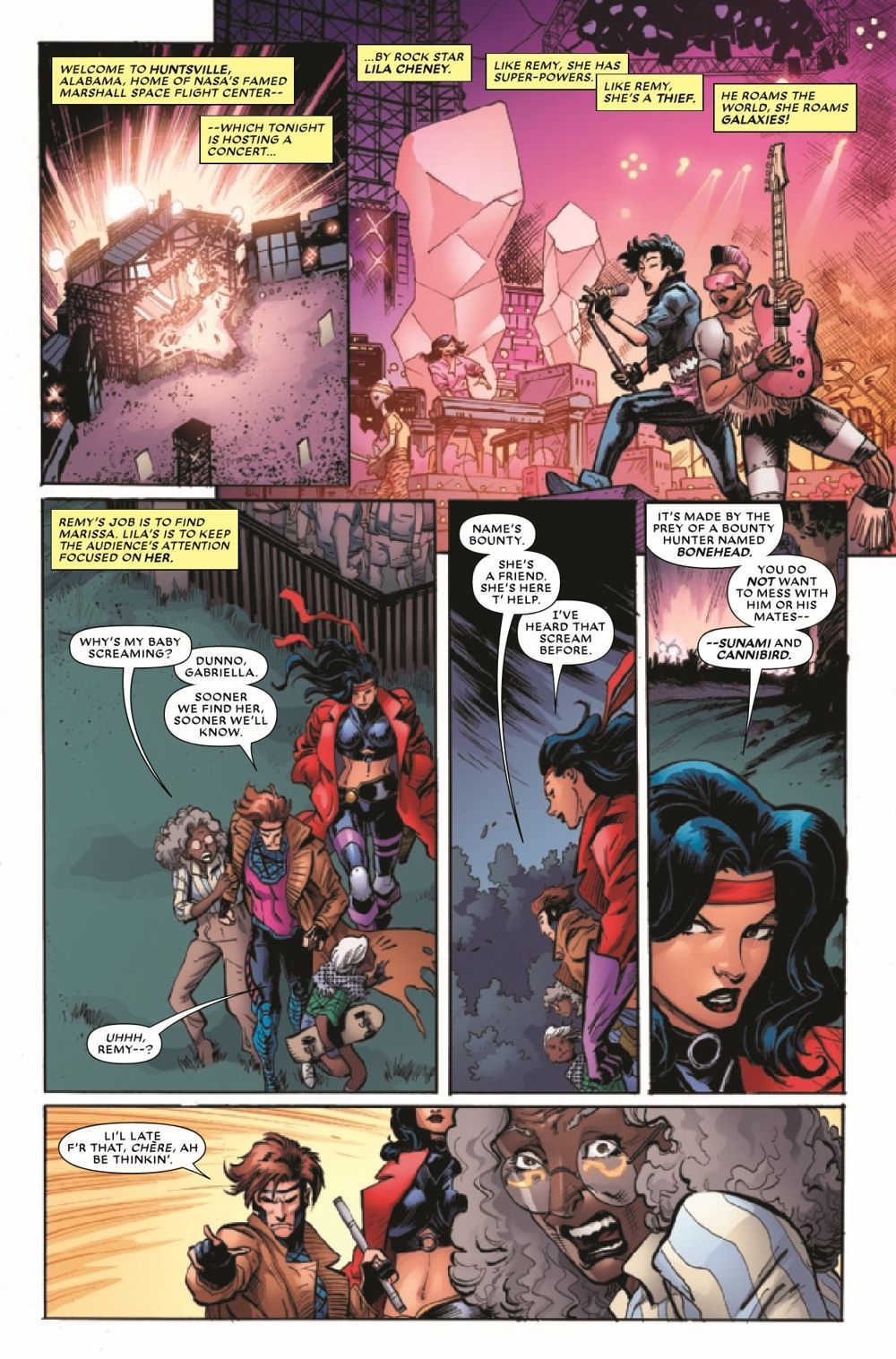 ALL GOOD THINGS, MON AMI… GAMBIT and 'RO must do battle with a trio of intergalactic bounty hunters as Remy finds himself in the crosshairs of competing forces looking for revenge…and a payday! LILA CHENEY rocks the galaxy with an explosive encore! All good things must come to an end…and will this spell the end of Gambit's partnership with 'Ro and with his love MARISSA?