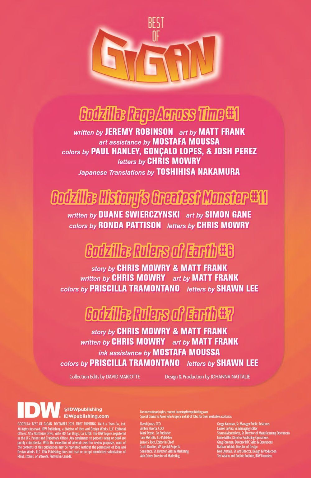 The world will tremble in fear when one of Godzilla's most ferocious foes arrives! When the technologically enhanced Gigan arrives from space, all other monsters beware! It'll take the strongest humans, machines, and protectors of Earth to stand up to the brutal blades of Gigan! Collects Godzilla: History's Greatest Monster #11, Godzilla: Rulers of the Earth #6 & 7, and Godzilla: Rage Across Time #1.