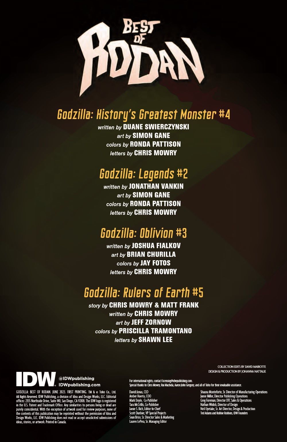Keep an eye to the sky where Rodan reigns supreme! The winged giant straddles the line between monster and protector in this collection of soaring Rodan stories by beloved Godzilla creators! It's fight and flight with the Best of Rodan!Collects Godzilla: Legends #2, Godzilla: History's Greatest Monster #4, Godzilla: Rulers of Earth #5, and more!