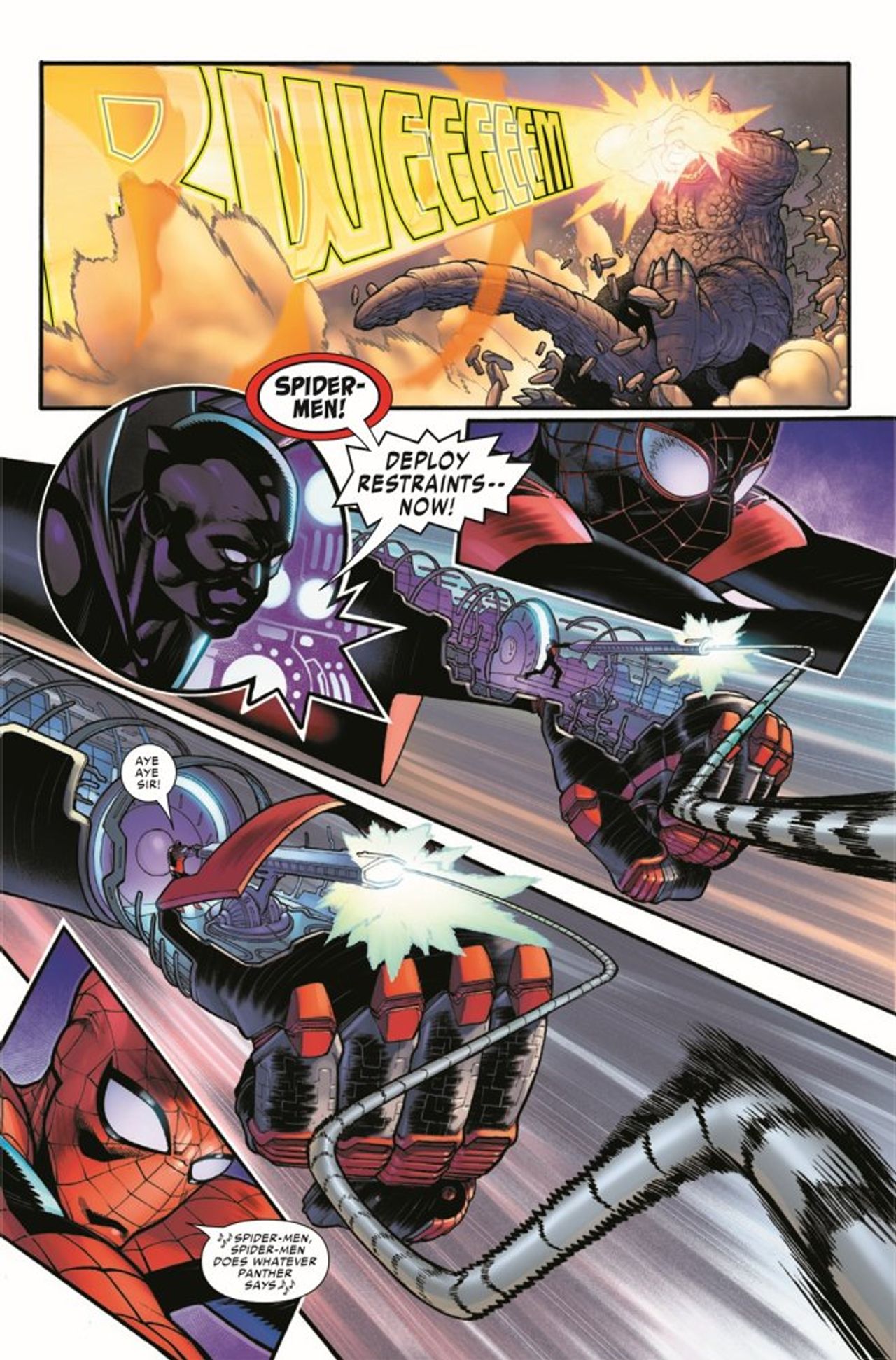 WORLD WAR GODZILLA! Make way, True Believers, as Black Panther debuts the mightiest weapon the Marvel Universe has ever seen before in this earth-shattering showdown between Godzilla and Marvel MECHA! As the two titans trade blows, the rest of the heroes race to exploit Godzilla's mysterious relationship to vibranium to help slow down the leviathan - but as the war between the King of the Monsters and the heroes of the Marvel Universe rages on, only one thing is certain: For whoever is left standing in the wreckage, the Marvel Universe will never be the same again!