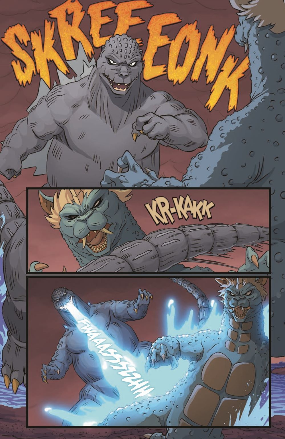 Cedric and his friends are having terrible dreams thanks to the Xiliens, who are using psychic technology to probe the minds of every living creature on Earth. That's the bad news. The worse news is it has pinpointed the den of King Ghidorah. The good news is the probe makes the Shobijin aware of danger on the horizon and allows them to warn our kaiju-connected heroes to be on the lookout—Cedric, Emily, Anderson…and Karen Higa, too!