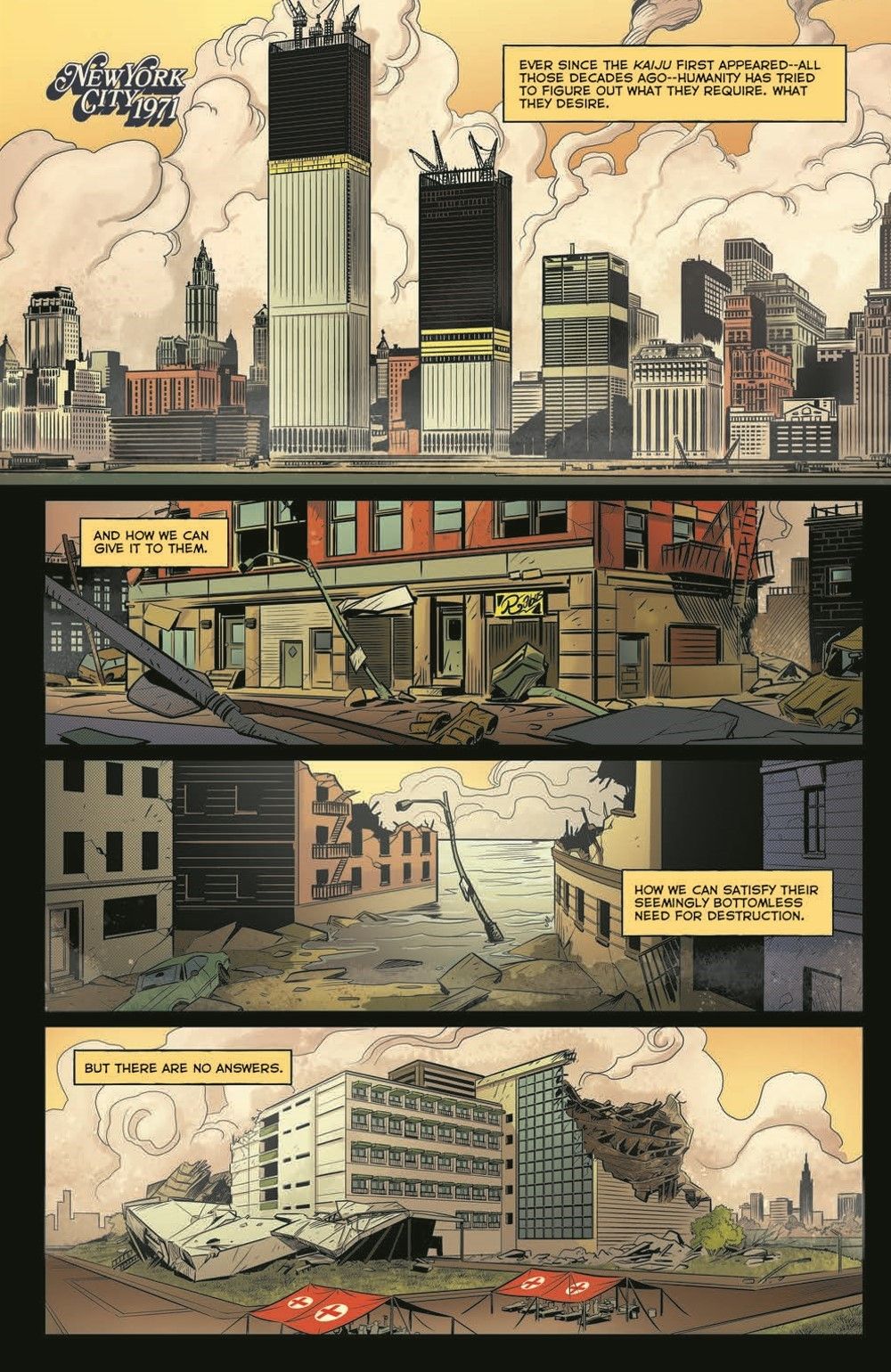 It's the 1970s, and the world's most terrifying Kaiju smash their way through New York City! As Godzilla and Hedorah do battle above, down below Todd Hopkins is racing across Manhattan in a desperate bid to save the only scientist who can stop the chaos and drive the monsters back into the sea. But before the day is over, secrets will be revealed and terrible choices made to save the city from utter destruction!