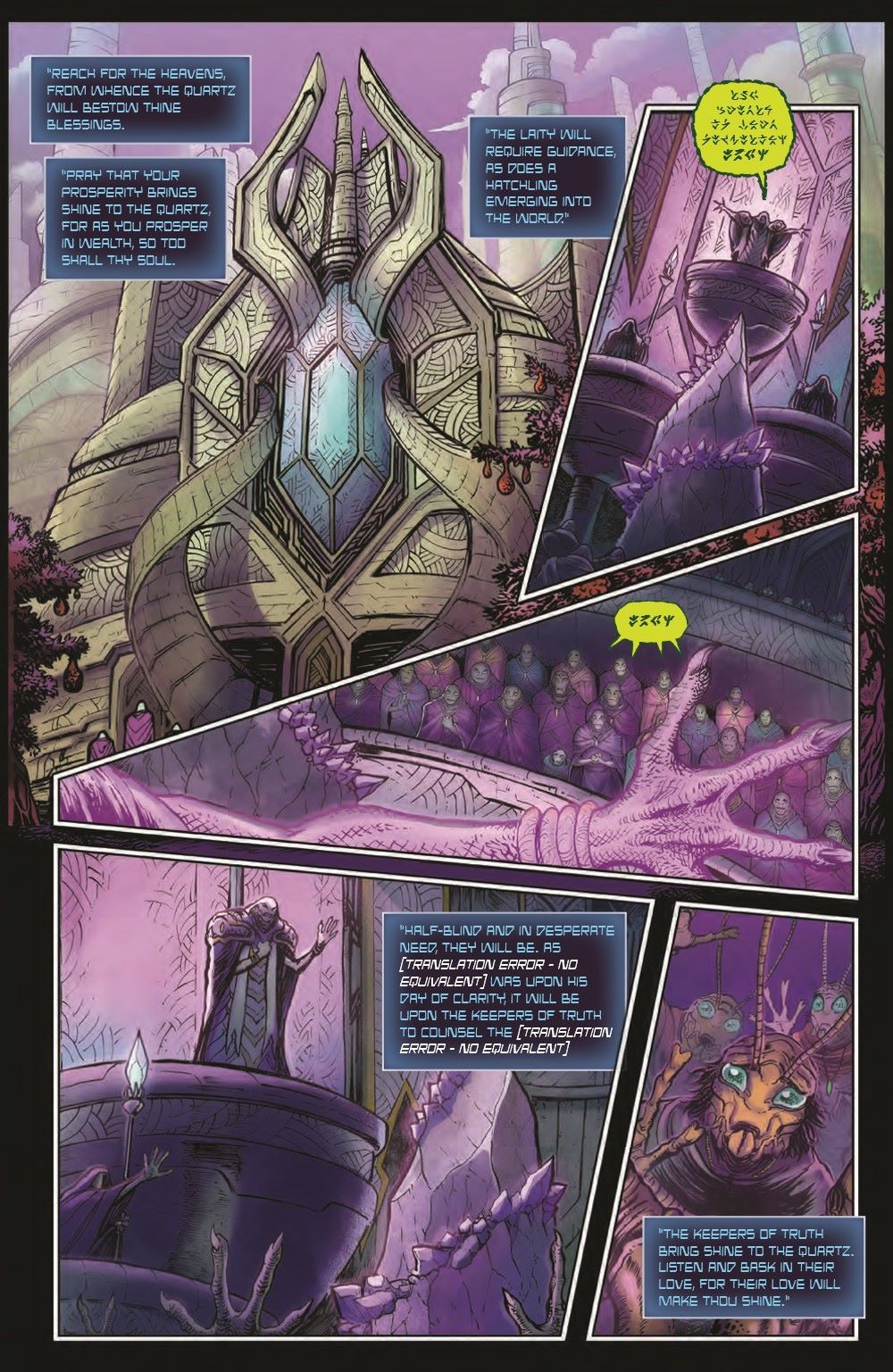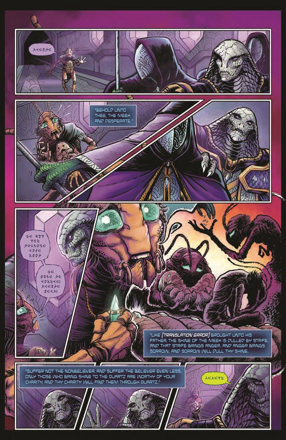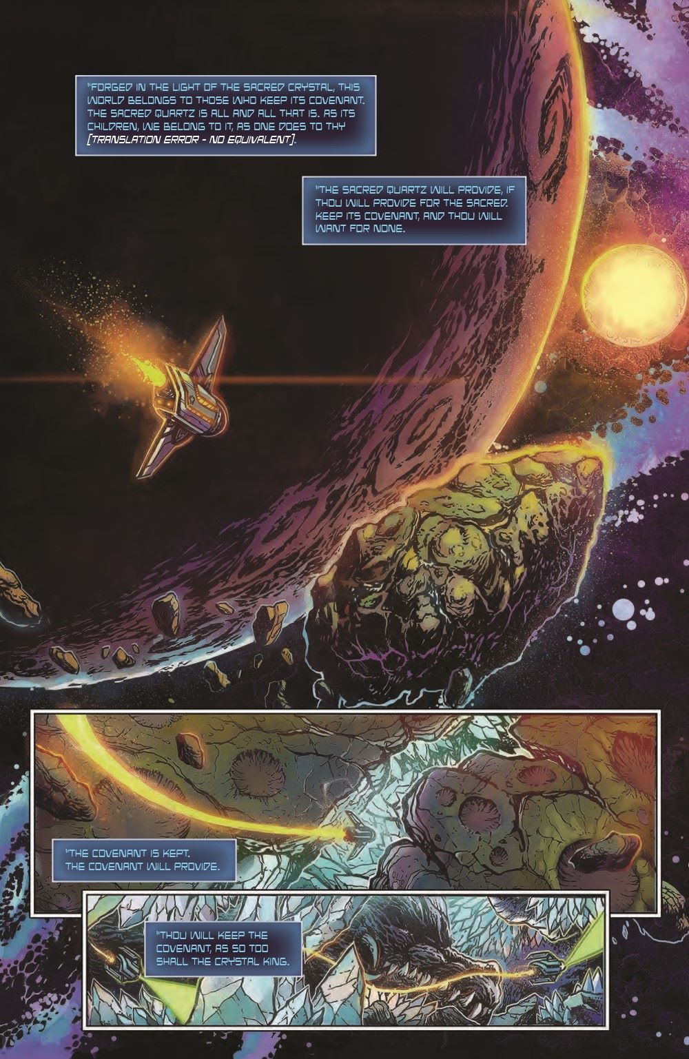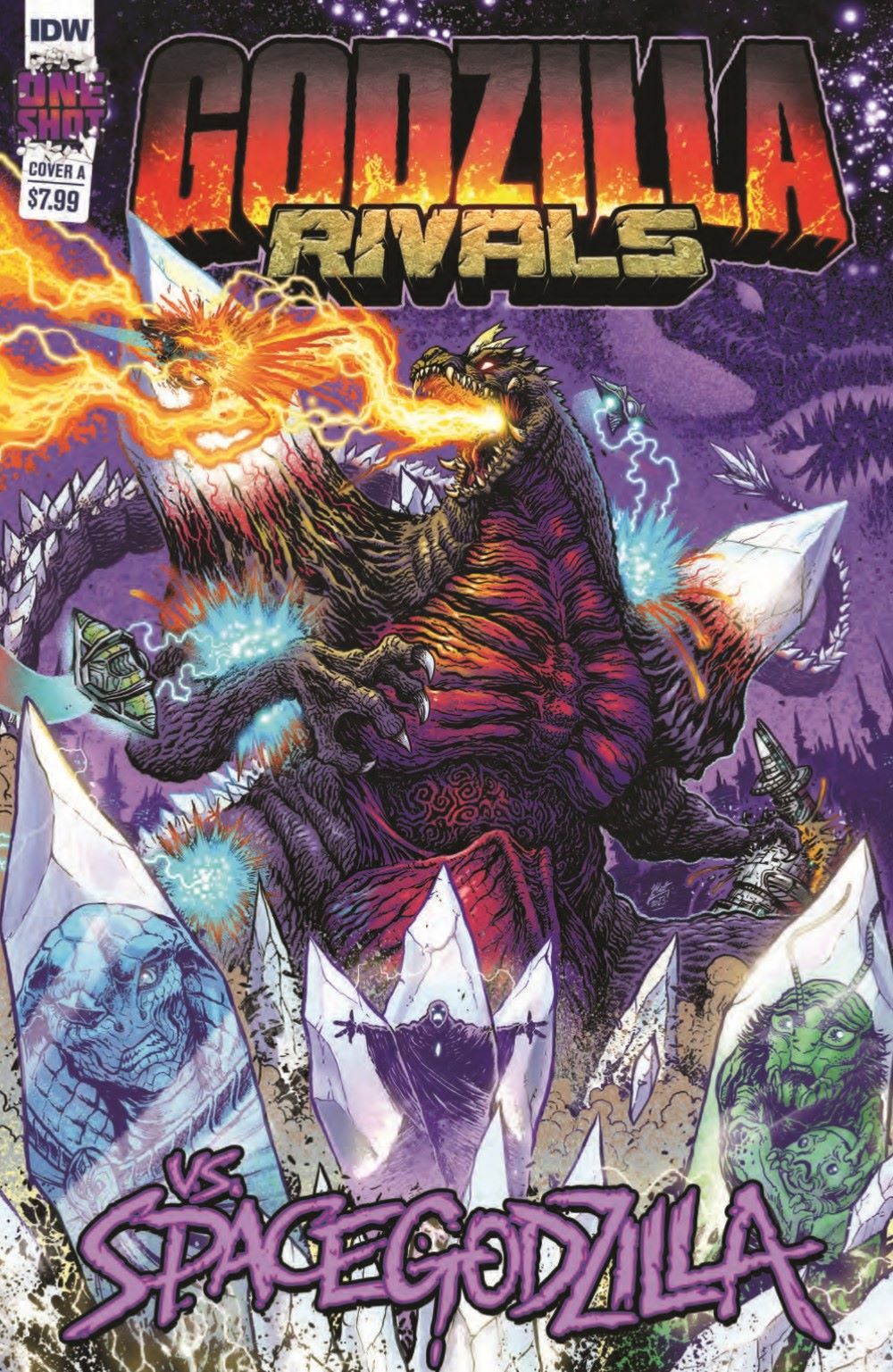 Some time ago, mysterious crystals fell to an alien planet, becoming the subject of a planetwide religion existing at odds with the planet's government. After years of conflict, the leader of what has become a powerful cult uses the crystals to summon his "god" and unleash it on his world. Little does he know he has only summoned the terrifying SPACEGODZILLA! …And SpaceGodzilla hears no prayers. Don't miss this all-new one-shot by superstar Godzilla artist Matthew Frank!