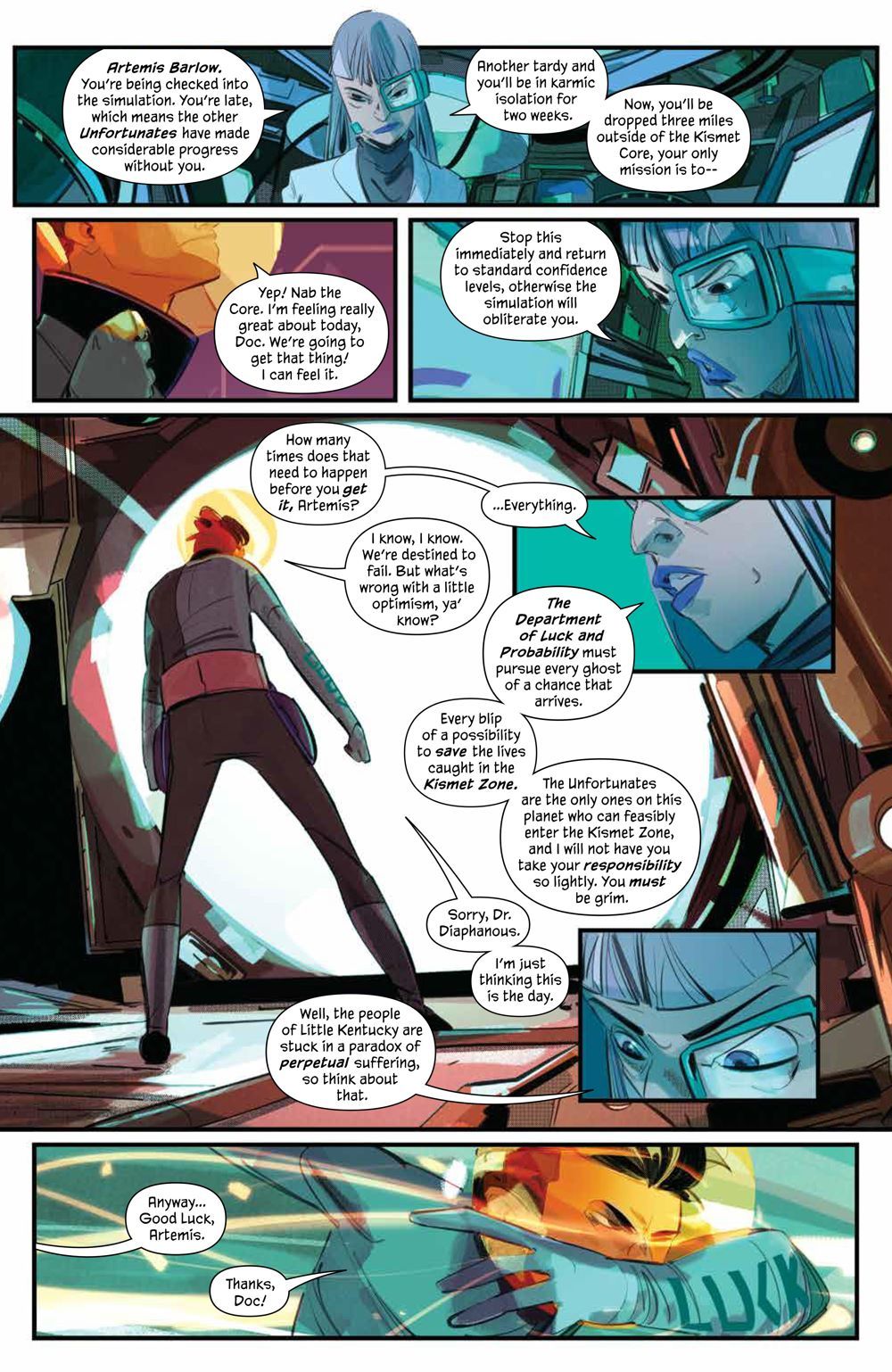 Luck might be worth more than gold. What if it could actually be weighed in the same way? Artie, Cherry, Hilde, and Joseph are The Unfortunates, a group of teens with absolutely no Luck. When the world is mysteriously plunged into chaos and reality itself is threatened, they may be our only hope. Together they are part of a government program dedicated to understanding the Constellations, mysterious beings who can seemingly control the very nature of Luck and its cosmic effects on reality. Their mission: return the world back to some semblance of order not dictated by Luck. Of course, with zero Luck, the odds aren't exactly in their favor. A bold new graphic novel by rising stars Matthew Erman (Power Rangers: Sins of the Future) and Stefano Simeone (Mega Man: Fully Charged) about defying fate against impossible odds. Collects Good Luck #1-5.