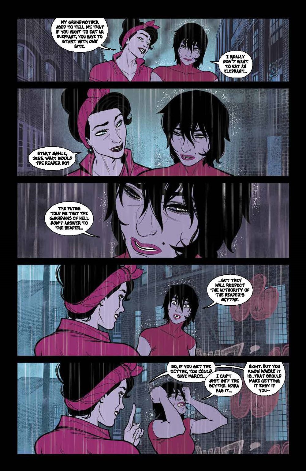 END OF STORY ARC. The gates of Hell wear thin as Eddie, thirsty for revenge, battles a merciless enemy that will push the reaper to his limits with revealing, spiritual wounds. Meanwhile the last person Jess expected to see, someone Death worked tirelessly to keep hidden, reveals themself… and Hell itself awaits…
