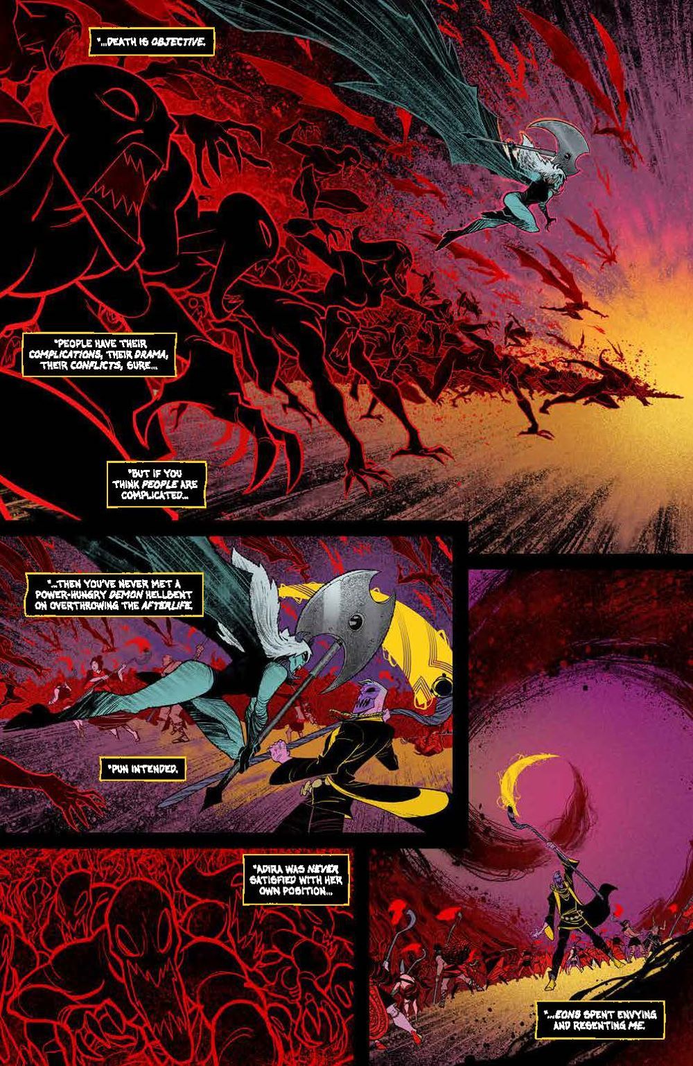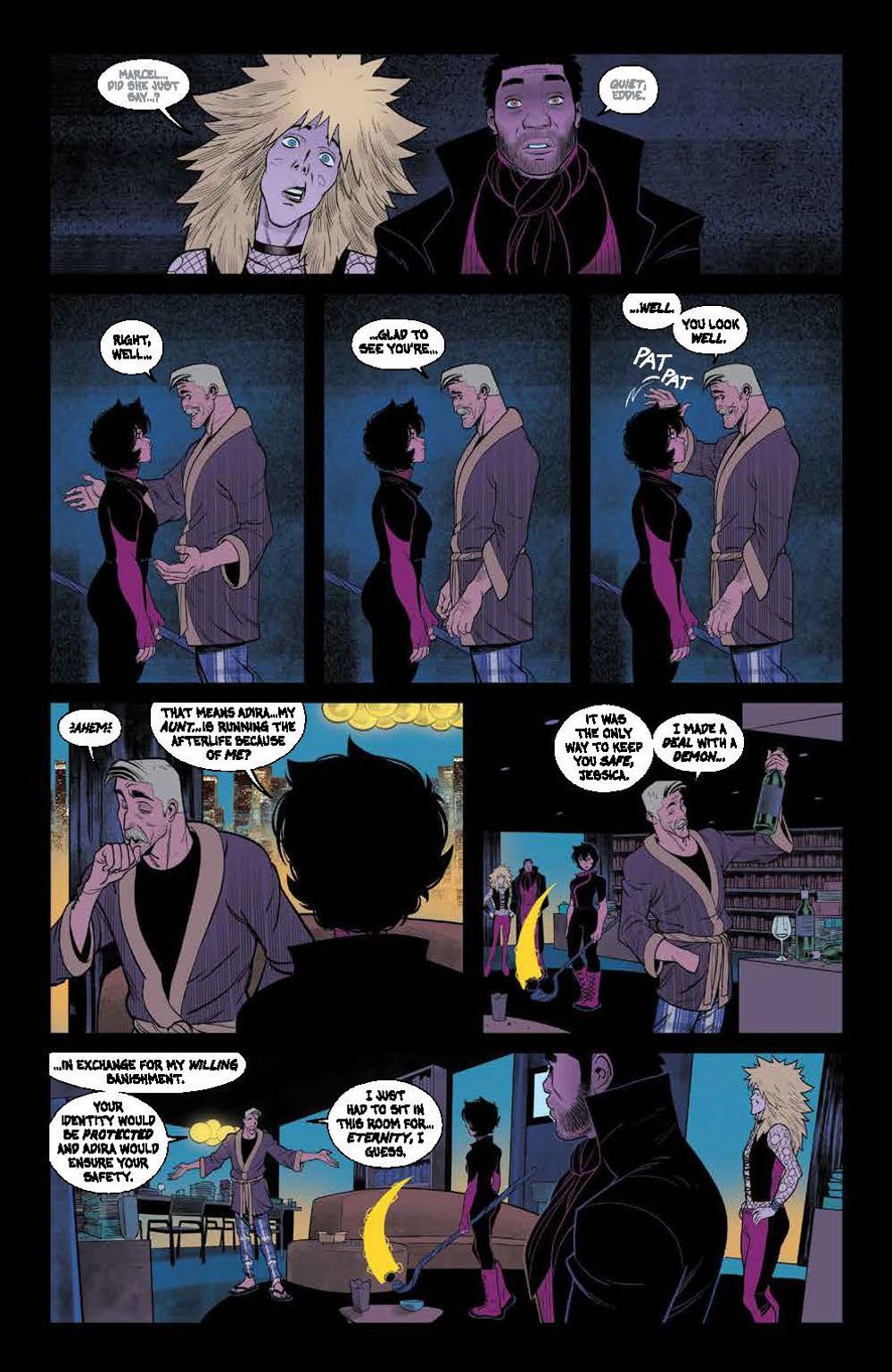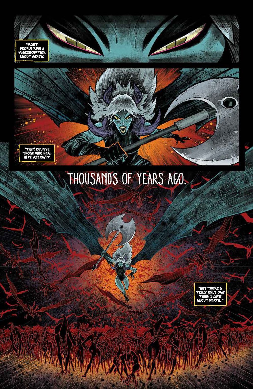END OF STORY ARC. The truth behind Jessica Harrow's mysterious death, and her connection to the Grim Reaper is finally revealed! But how does this connect to her unique abilities, and the ancient force known only as… THE END? The epic first arc of the breakout hit of 2022 concludes here, revealing macabre secrets and what lies ahead for the future of the series!