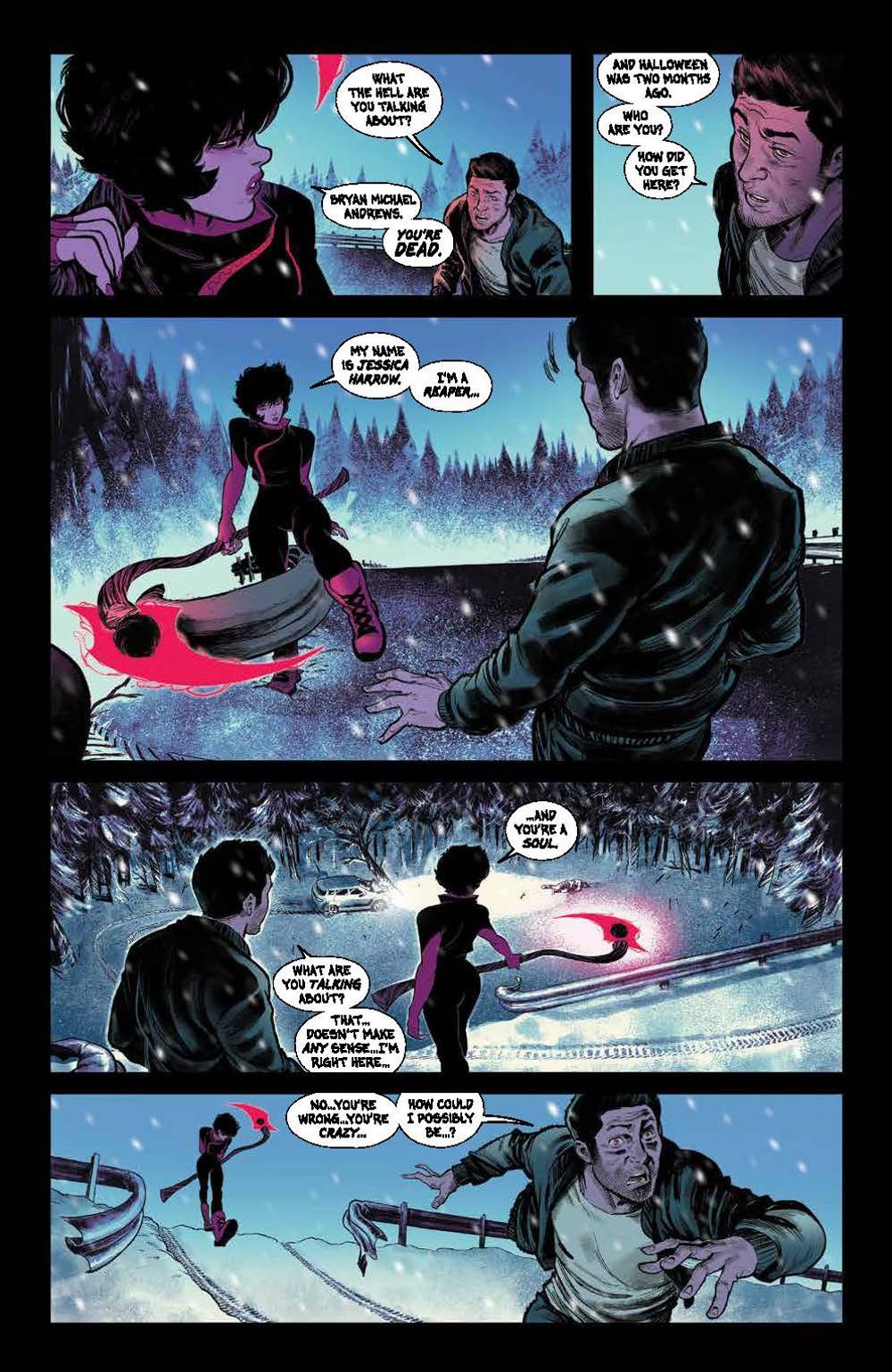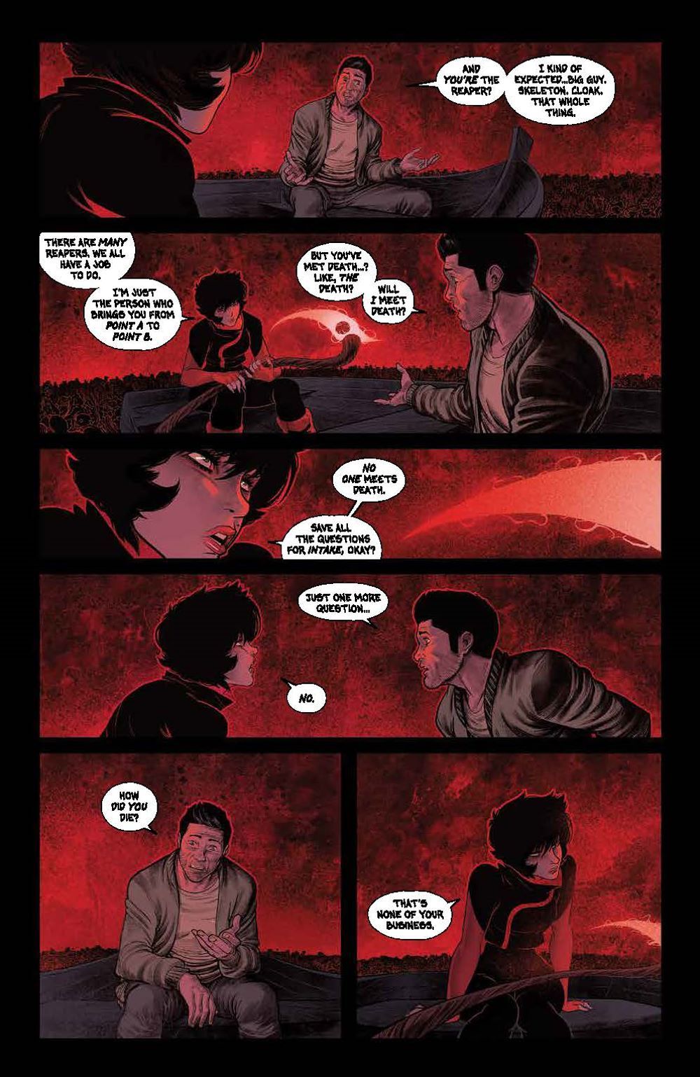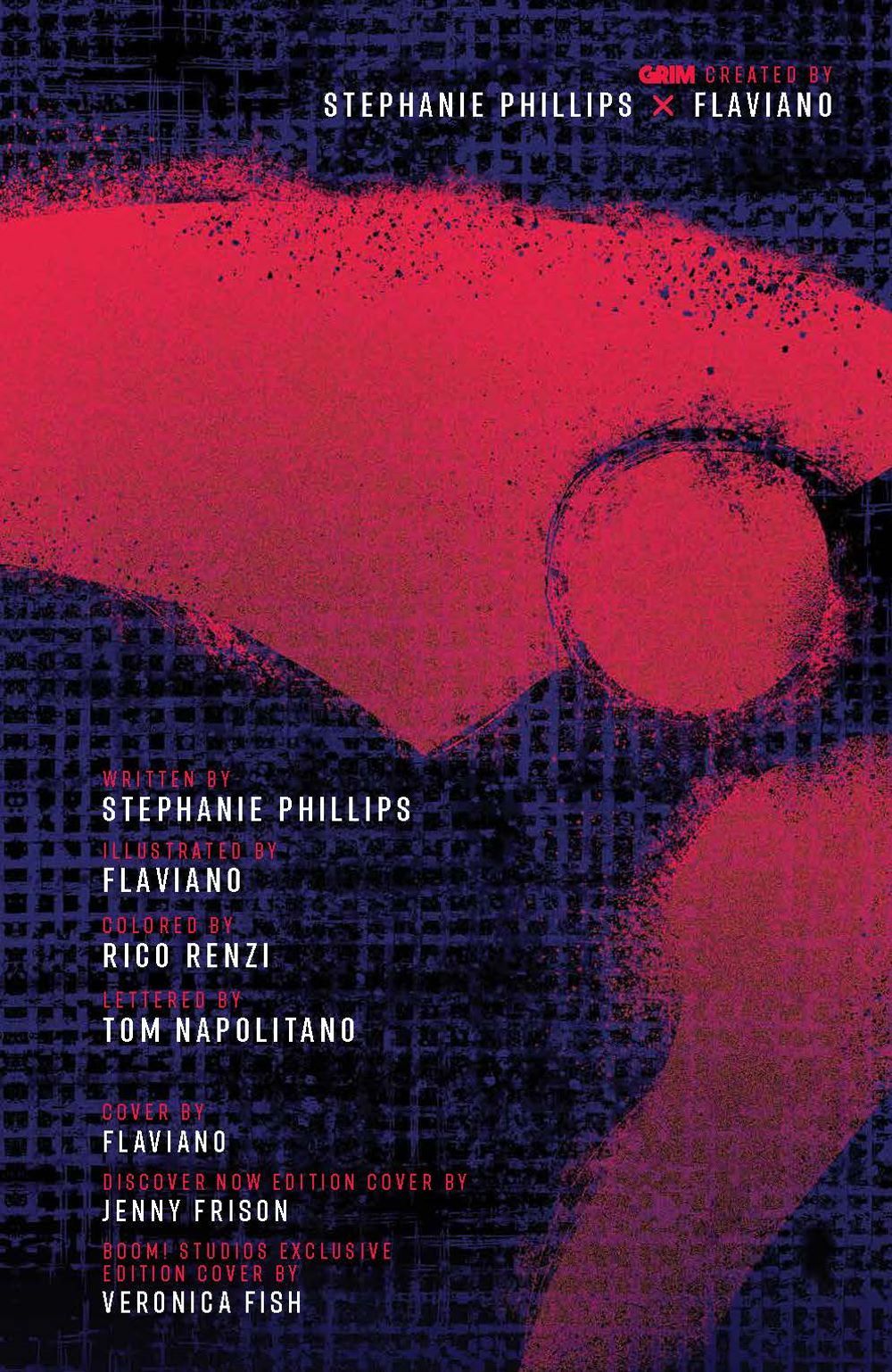 Jessica Harrow's untimely death is a mystery… but her journey as one of many Reapers in the afterlife has only begun! Join Jessica as she discovers the secrets of the beyond, and finds out what happened to the Grim Reaper himself! Acclaimed writer Stephanie Phillips (Harley Quinn) and fan-favorite artist Flaviano (New Mutants) present the first collection of this widely sold-out smash hit that fans haven't been able to get enough of–a bold new vision of what comes after, and the nature of death itself! Collects Grim #1-5.