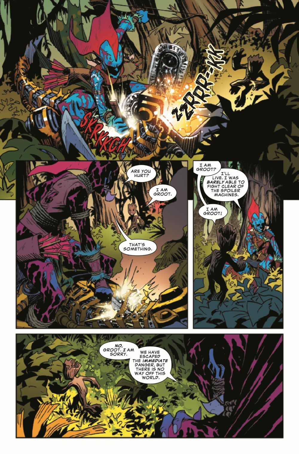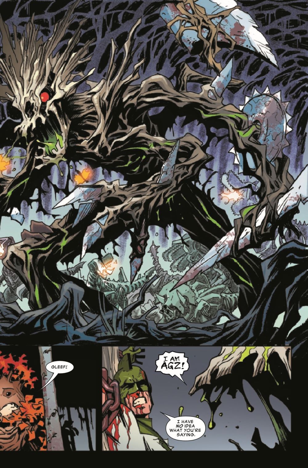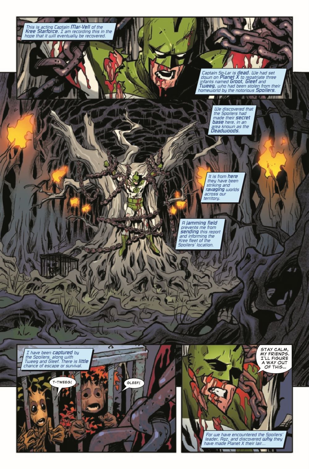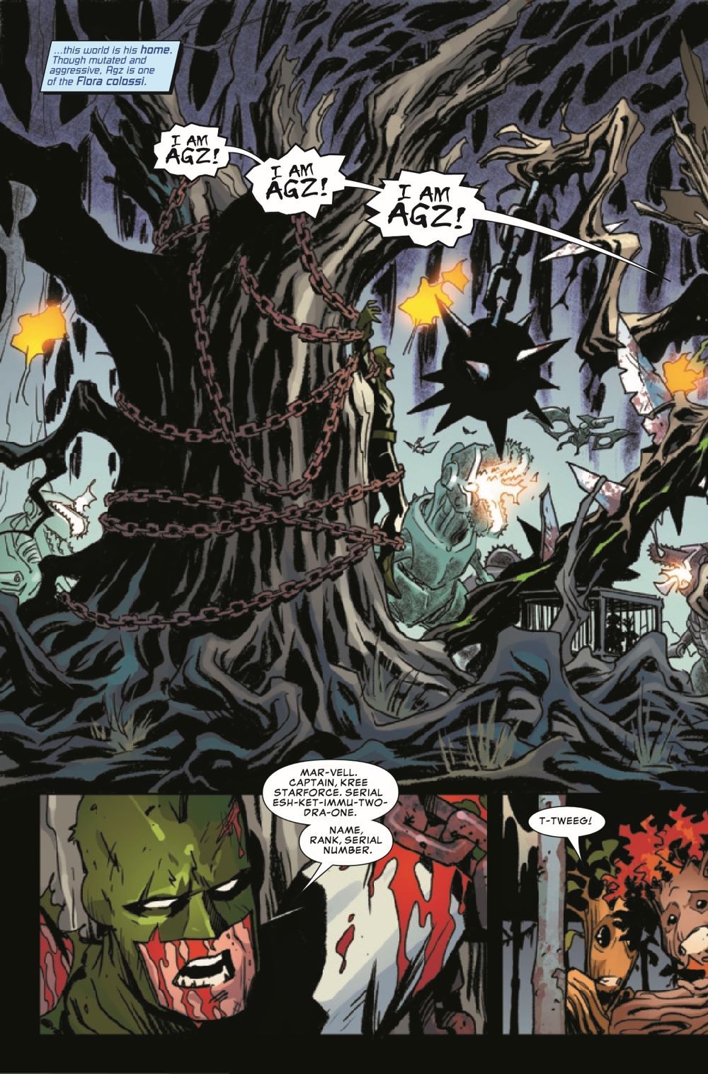 Mar-Vell and Yondar have been captured by the monstrous Agz! But there's more to this deadly creature than Groot and his friends realize. Who is he? And why has he razed Groot's homeworld? Find out here!