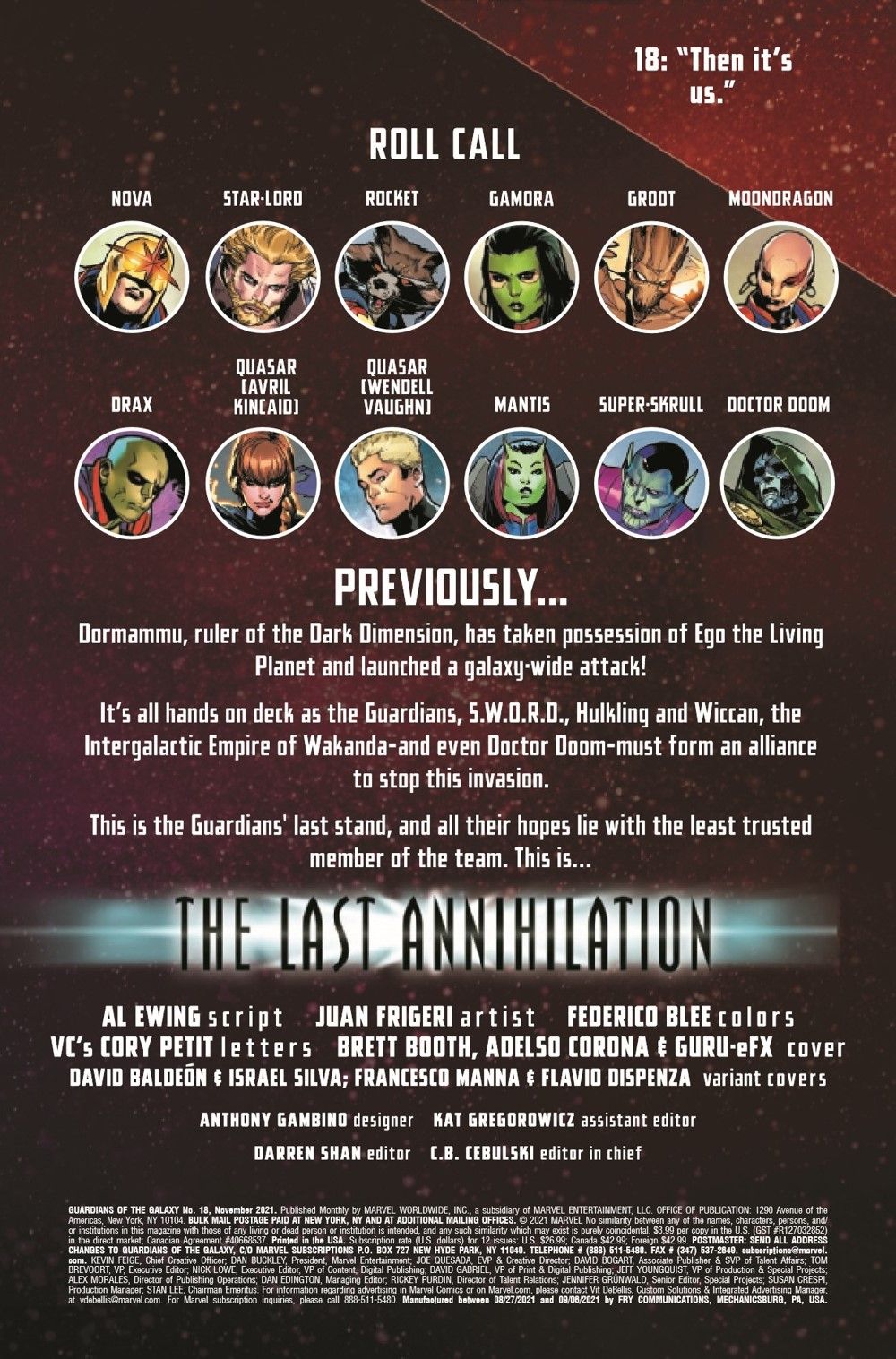 THE LAST ANNIHILATION CONCLUDES! The Guardians and their allies are being overrun on all fronts by the Mindless Armies of Dormammu. There's only one hope for the galaxy as we know it. ROCKET RACCOON has a plan. All he needs to know is Dormammu's weak spot. Dormammu doesn't have a weak spot. Uh-oh.