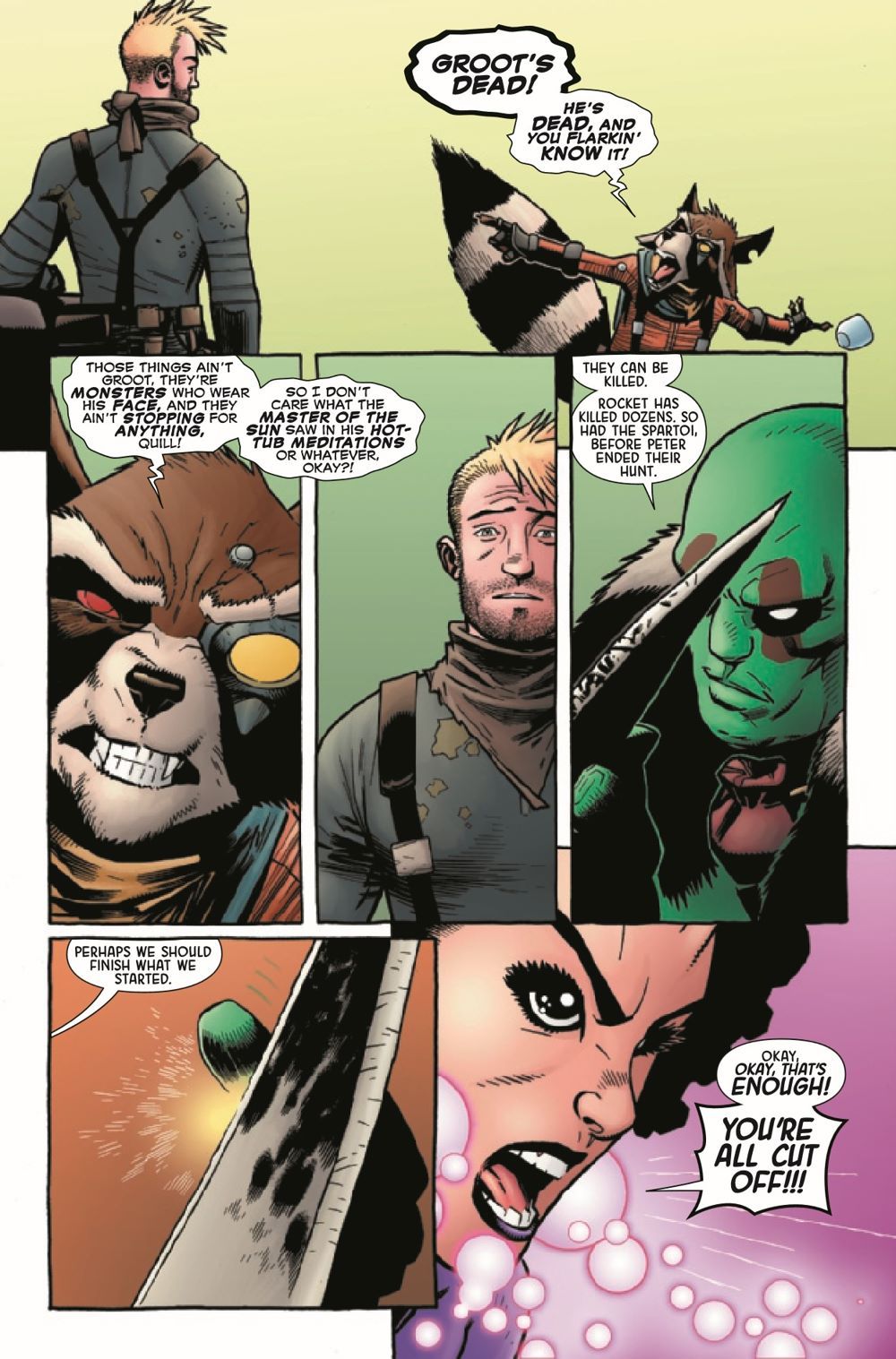The mystery behind Grootfall is revealed. How will this forever change the course of the Guardians? Find out here. PLUS: A bonus page written by Jonathan Hickman - WHO ARE THE G.O.D.S.?