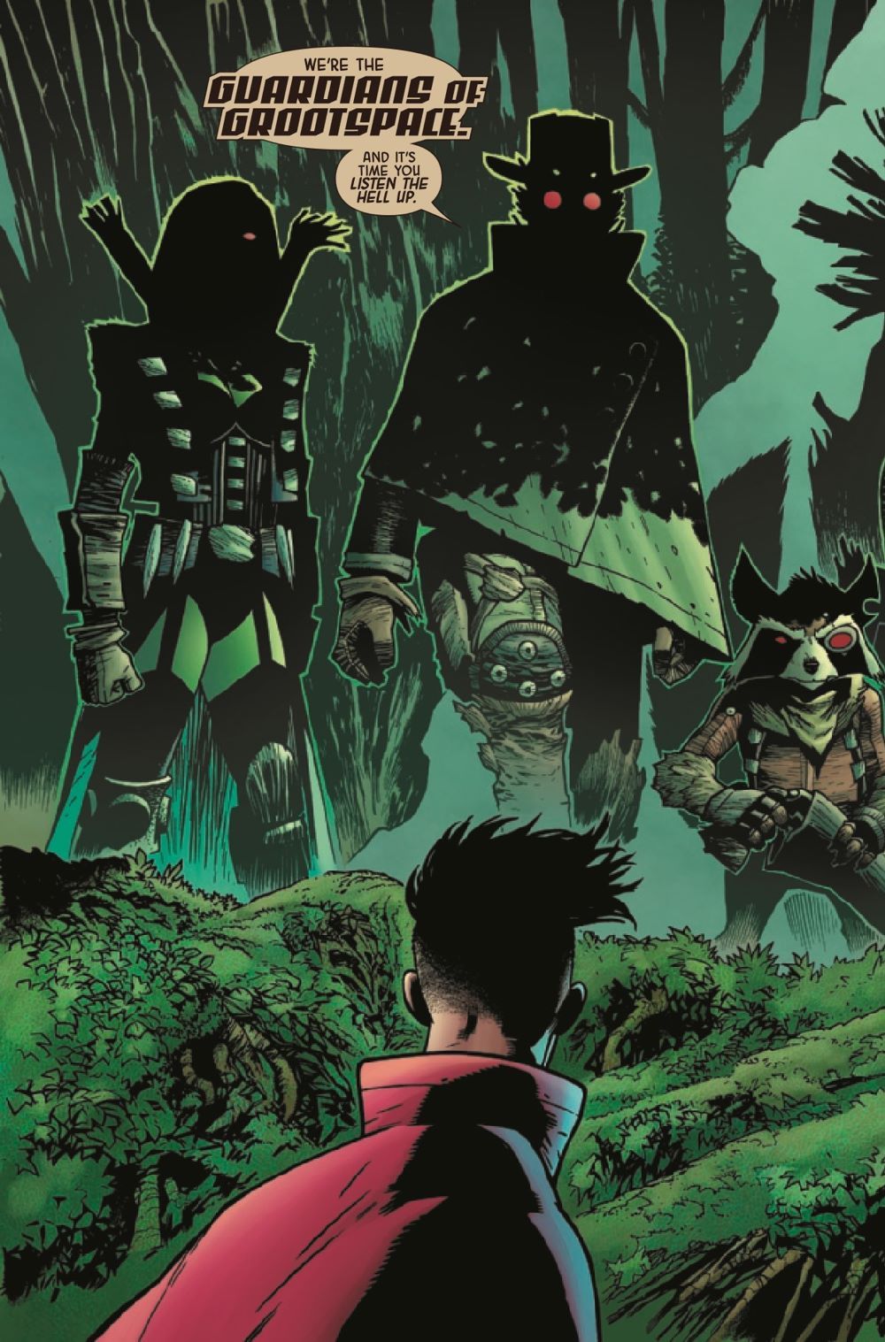 R.I.P. GUARDIANS! The Guardians of the Galaxy are dead. The Manifold Territories are no more. In their place is Grootspace! With the cosmos' heroes defeated, it's up to Emperor Hulkling and Wiccan to hold the Grootfall back from the rest of the universe. Is this the beginning of a NEW Guardians of the Galaxy?