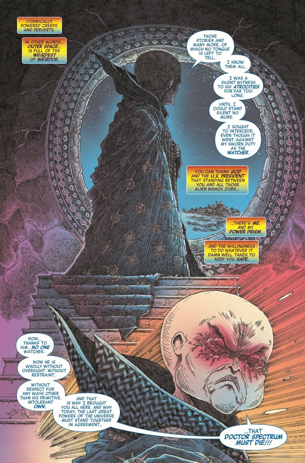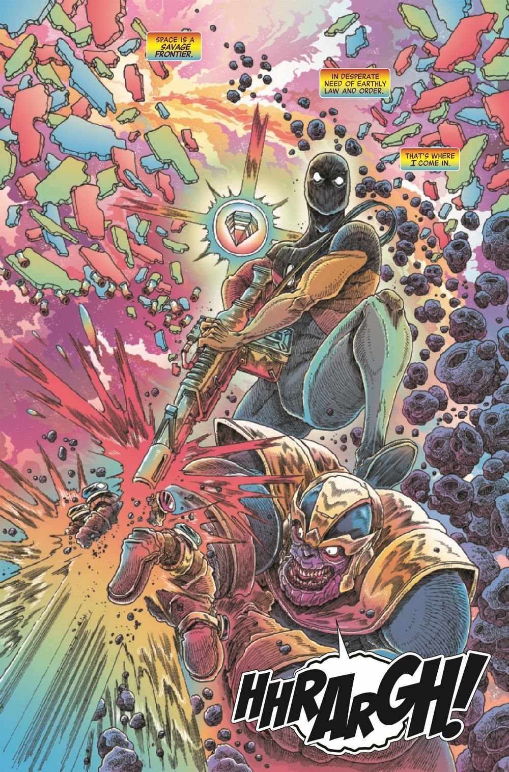 With the cosmic might of his Power Prism, Doctor Spectrum has become the most feared lawman in the heavens. But now the dark forces of deep space have sent the galaxy's most notorious bounty hunter to end Spectrum once and for all. That's right, here comes Rocket Raccoon! Plus: In a backup tale, the all-new Starbrand finds herself alone in a strange new universe.