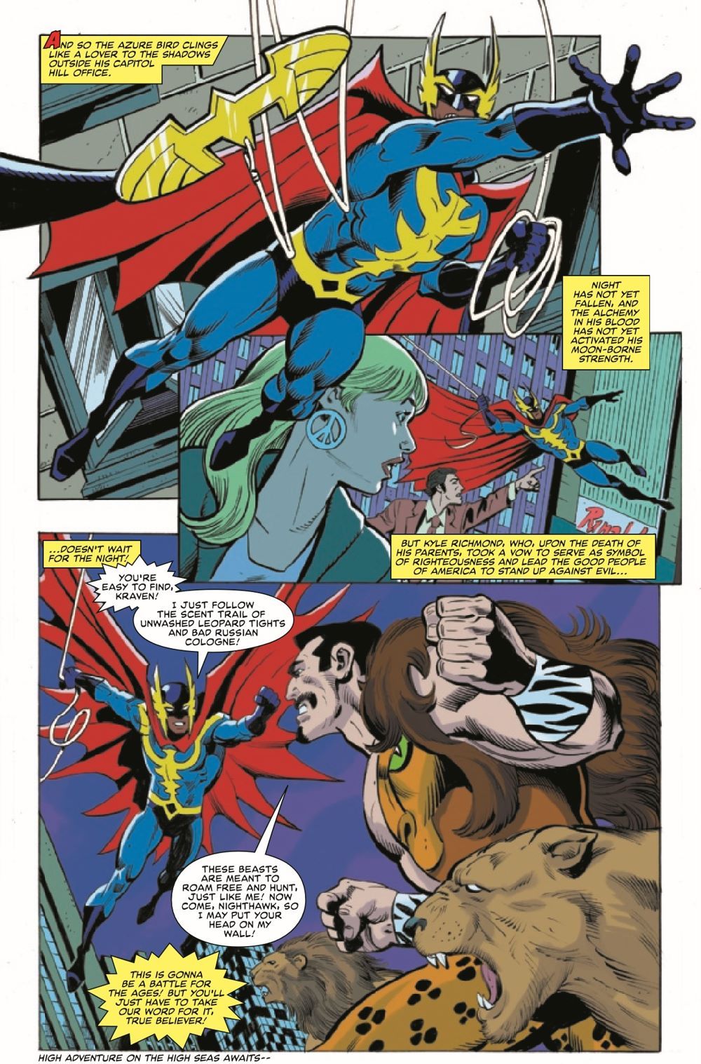 A TALE FROM THE SQUADRON'S PAST! Years ago, Nighthawk and his trusted partner, the Falcon, patrolled the streets of Washington, DC, from the vile criminals that lurked in the dark. But that all changed one fateful night... Re-presenting for the first time ever: the Night Sam Wilson Died!
