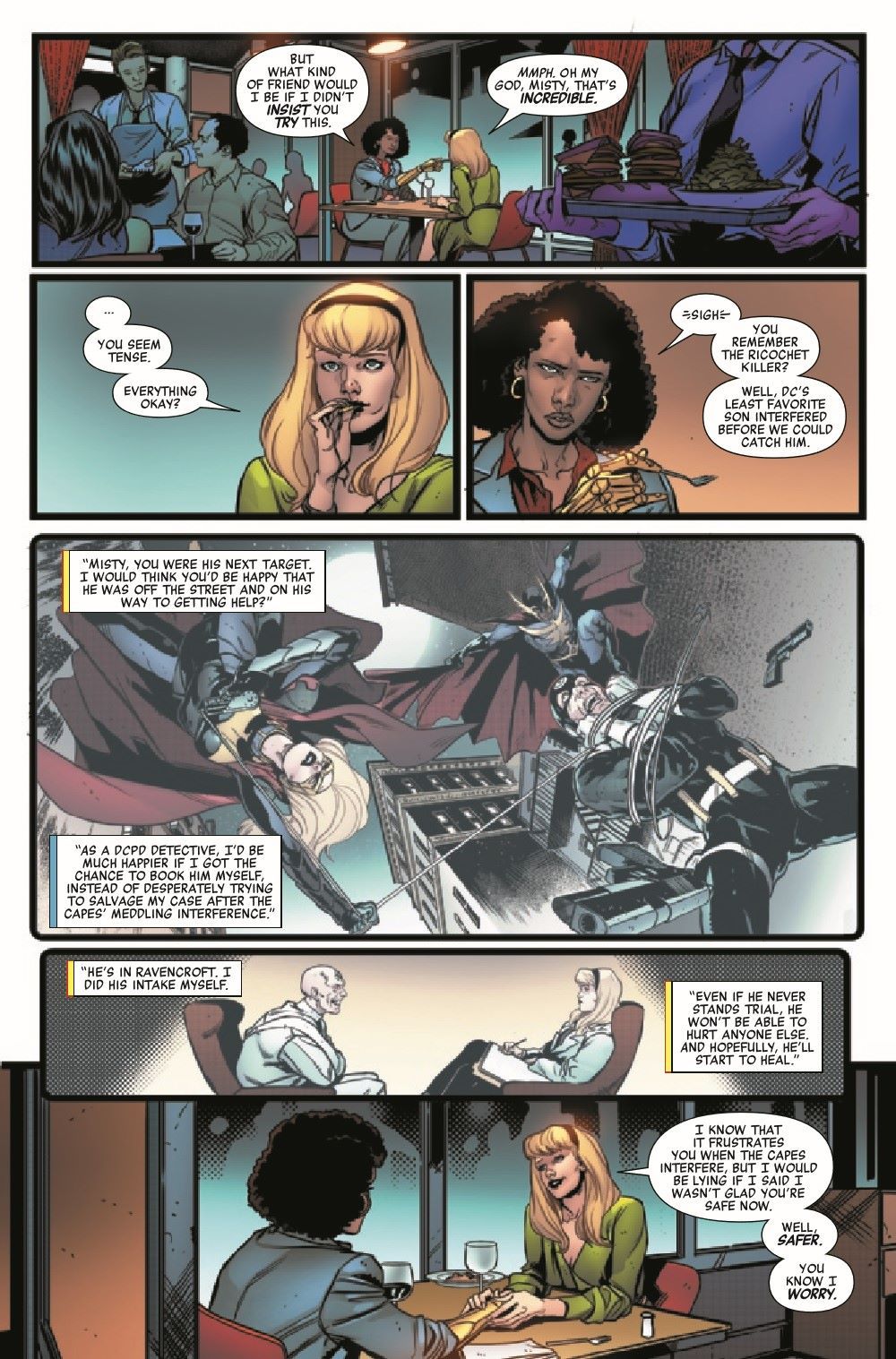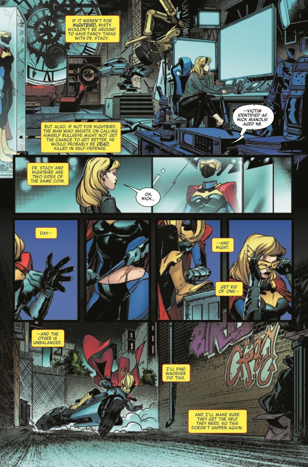 INTRODUCING: NIGHTBIRD! By day, Dr. Gwendolyn Stacy is Ravencroft Asylum's leading psychiatrist. But by night, she dons the guise of the vigilante known as Nightbird! But how did this happen? Why did this happen? And what does Kyle Richmond, the Nighthawk, have to do with it? There may not be any time to find outt, because Nightbird must hunt down a new killer called the Jackal!