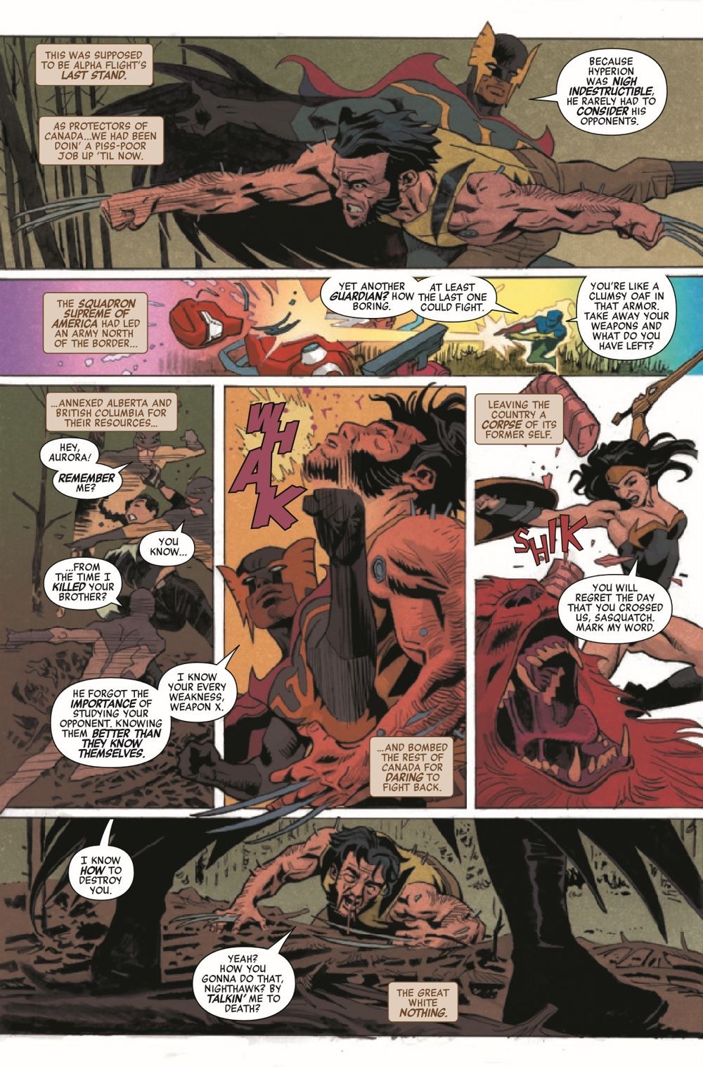 THEY'RE THE BEST THERE IS AT WHAT THEY DO! In a world without the Avengers, the Squadron Supreme protects and defends the interests of America! But where does that leave a country like Canada? The Great White North is now a wasteland. Their forests are scorched. Their provinces annexed. Their people barely surviving. Who will stand up and protect them from the supremacy of the Squadron? Weapon X and Final Flight, that's who!