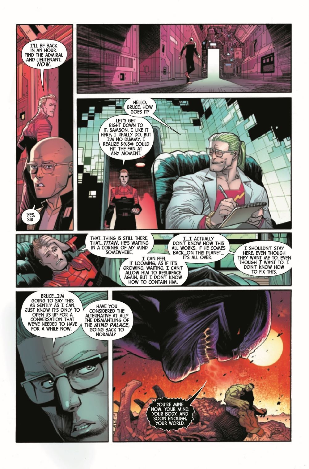 TITAN IS COMING… Bruce Banner has finally found paradise. Revered as a god and with no fear of hurting everyone around him, for the first time in a long, long time… things are looking pretty good for the Hulk. But as with everything else, Bruce Banner should have known that he can never know peace for long. And Titan, the darkest part of him, refuses to remain caged like an animal…