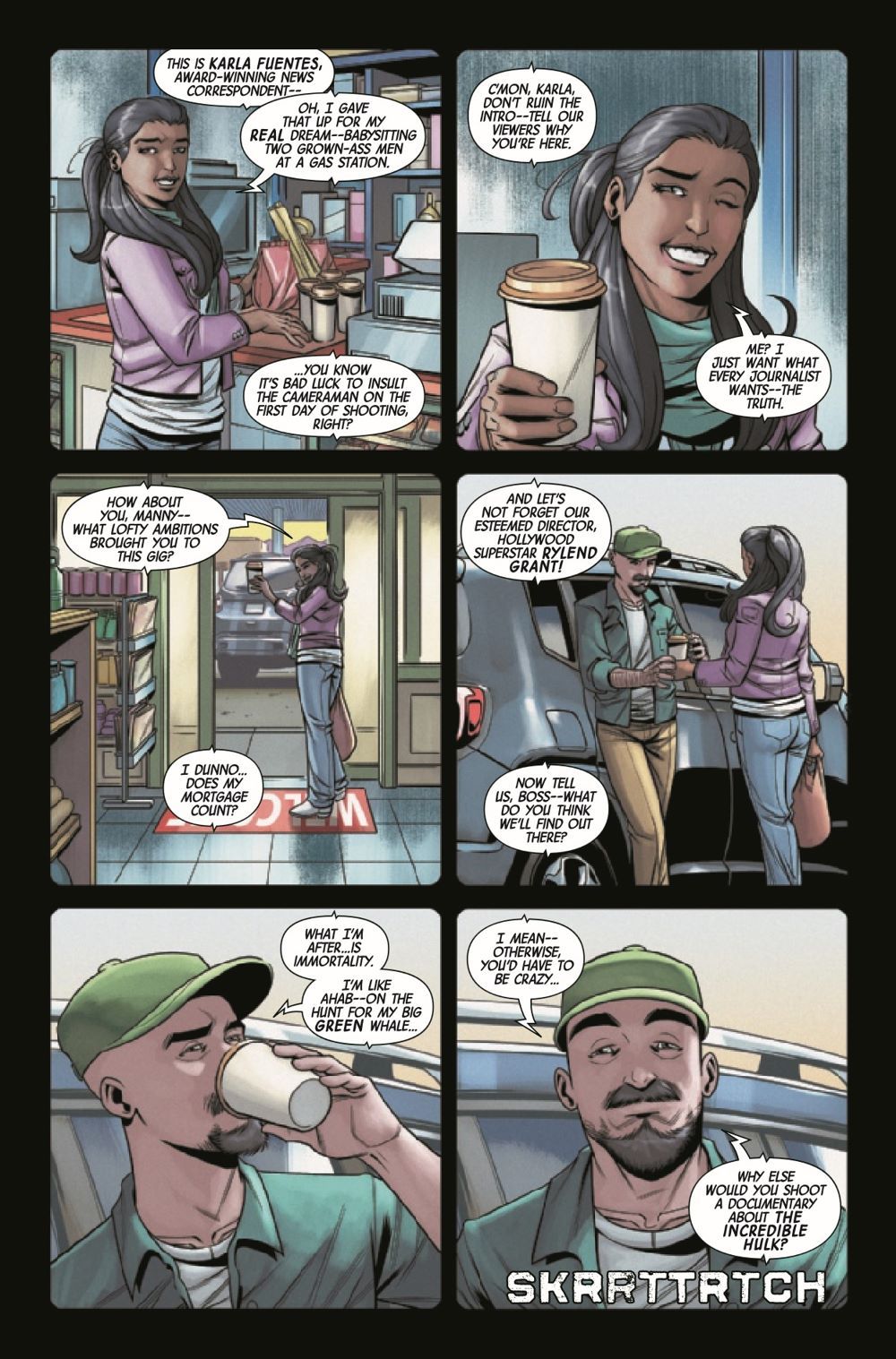 HULK VS. GIGANTO! A documentary crew is on the hunt for a monster at the heart of a gamma radiation leak, but they get much more than they bargained for when they end up on Hulk's angry side - and caught in the middle of a brawl between two unstoppable giants, as Hulk battles an unleashed Giganto! Plus: A special preview, exclusive to this issue, of the shocking new direction Hulk is headed in this summer!