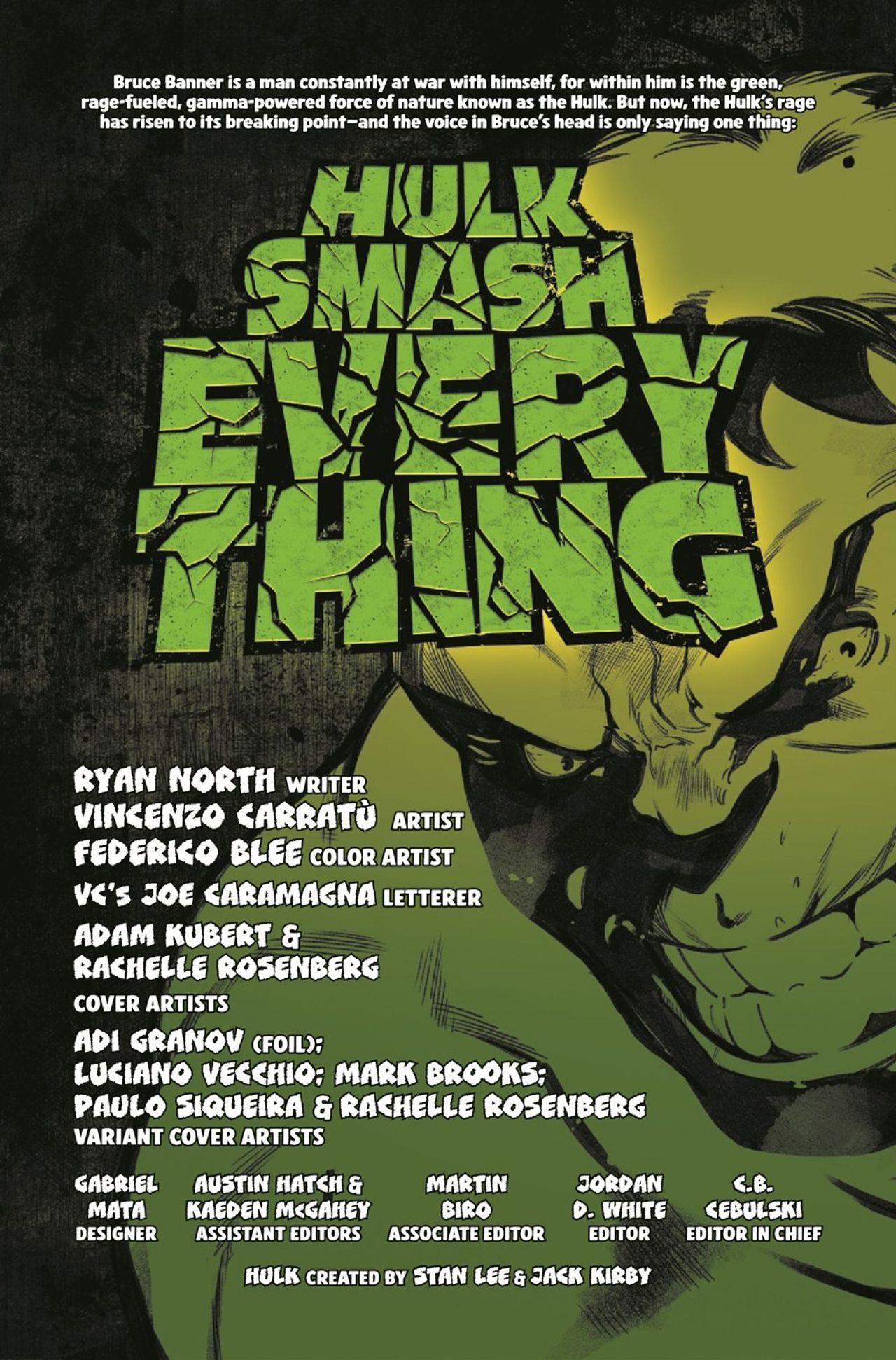 A GUARANTEED SMASH HIT!!! Is Hulk really the strongest there is? Sure, he's stronger than most PEOPLE…but is he really stronger than EVERYTHING? Dinosaurs? Planets? Gravity? Cosmic forces??? Find out here because when we say Hulk takes on all-comers in this new miniseries, we really mean it!!! It's non-stop action in the classic mighty Marvel manner from Ryan North ( ONE WORLD UNDER DOOM, SQUIRREL GIRL) and Vincenzo Carratu (PSYLOCKE, ASTONISHING ICEMAN)!
