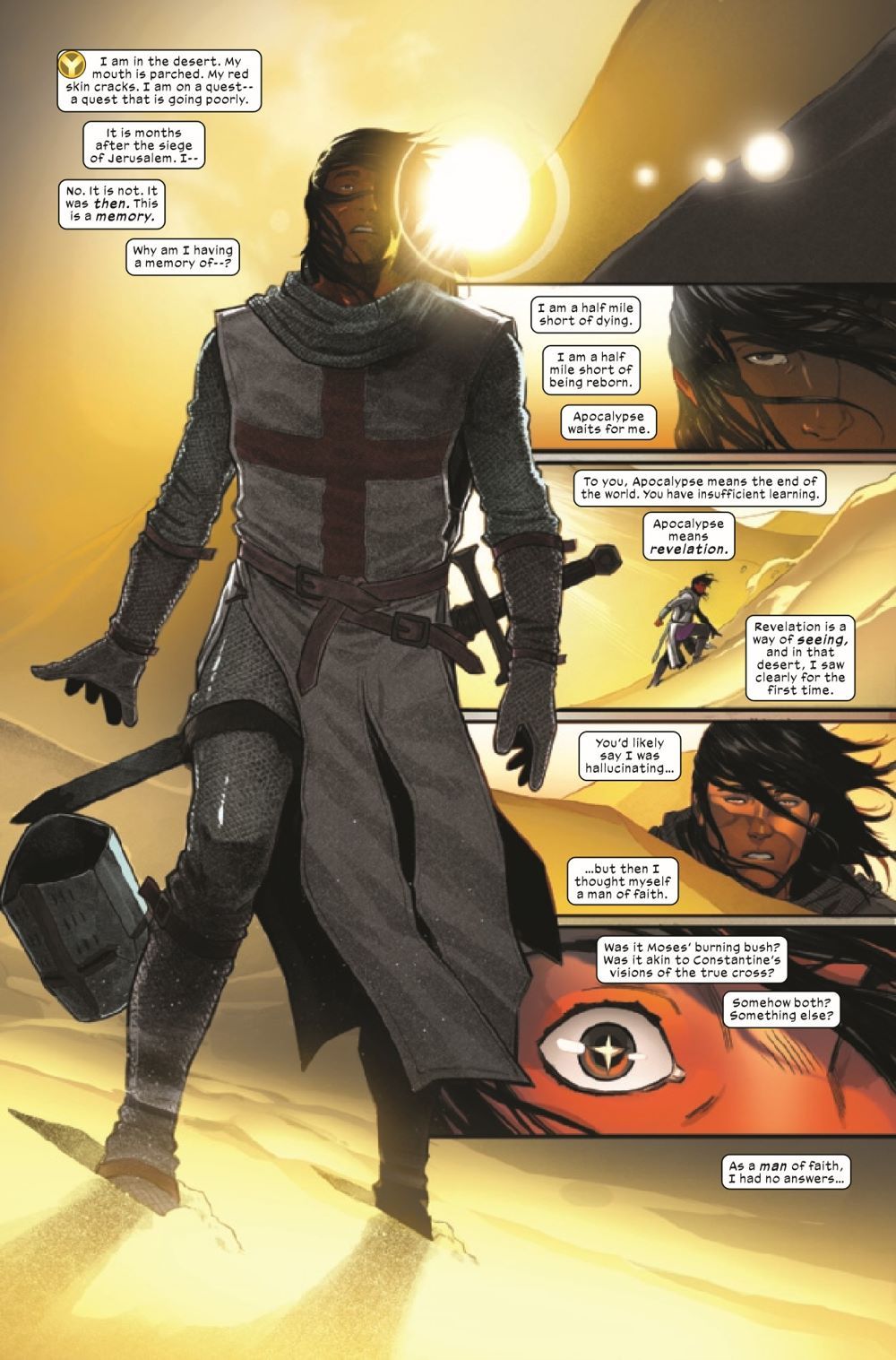 THE BOOK OF EXODUS! Bennet du Paris was born in the 12th century. Exodus marched forth with a sword in his hand and a shield in his heart to protect what he believes. It's now the 21st century. What's changed? Nothing. Absolutely nothing. And the Eternals who dared attack Krakoa are going to discover what that means.