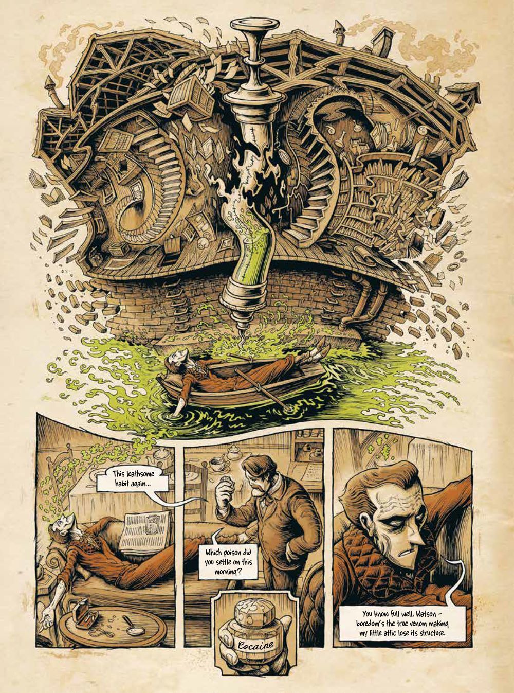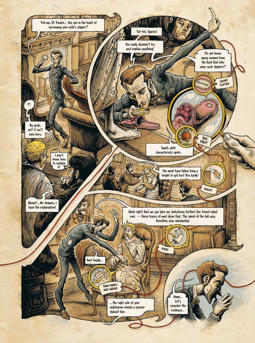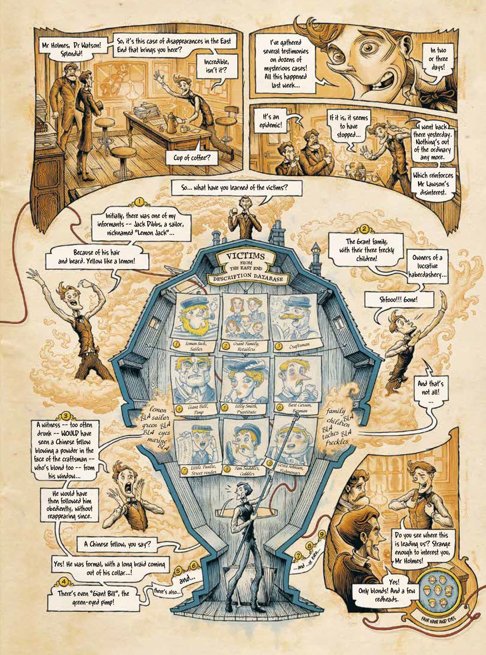 A visually stunning treat, every thought and clue that flows through Sherlock's mind is thoroughly explored and displayed in the art for readers to latch onto. Put on your deerstalker and pull out your magnifying glass, there's a mystery to be solved!