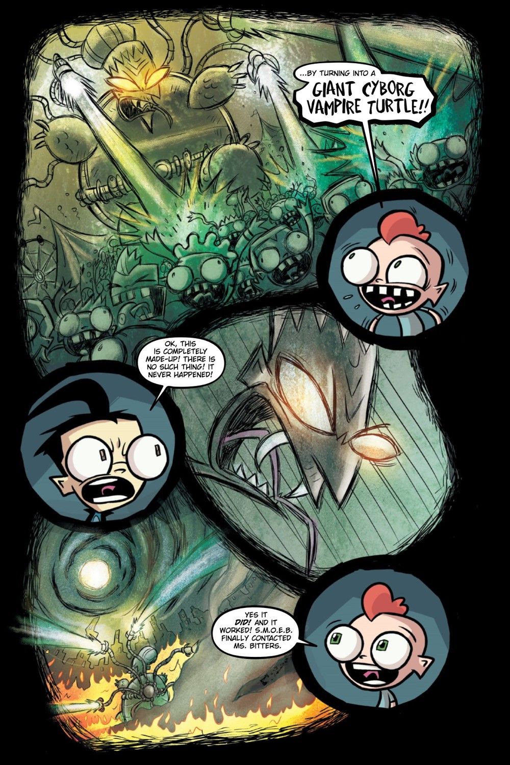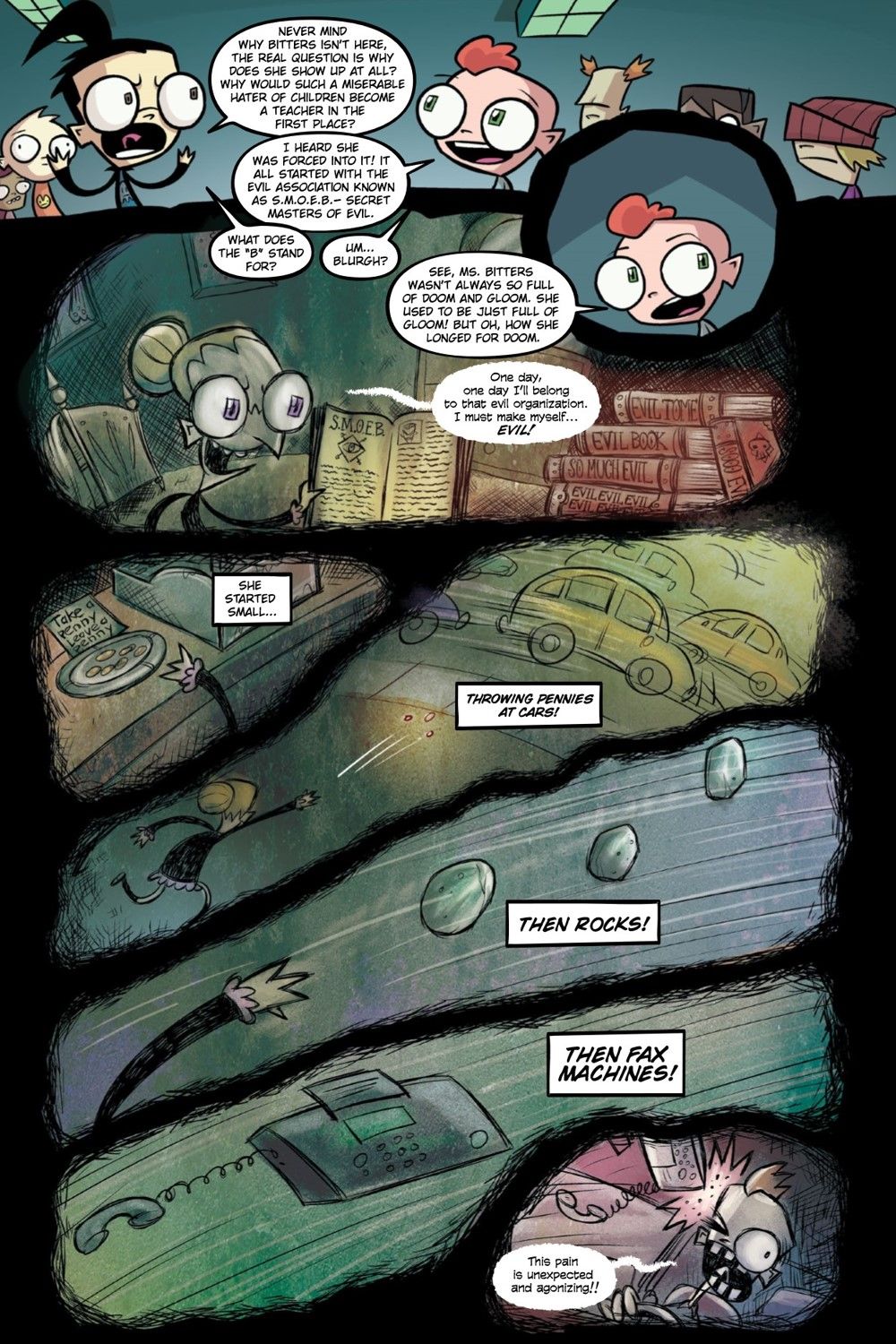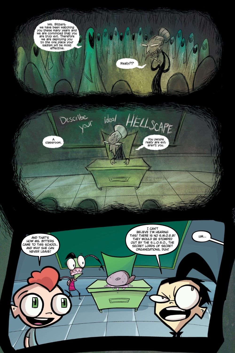 A brand-new collection featuring four of our favorite stories from the Invader ZIM comics highlighting skool--a place where young, impressionable human minds are molded into... eh, we're not sure what happens after that. But now you can relive all the best moments of ZIM and Dib's skool days! From incorrect rumors of Ms. Bitters' demise (and origin) to the trials and tribulations of the National Phitness Test, and finally, a time-honored class assignment: pretending some inanimate object is a baby and trying not to kill it. Heck, you might even learn something! (Learning is not guaranteed.) Contains issues #15, 32, 37, and 45 of the Oni Press series Invader ZIM.