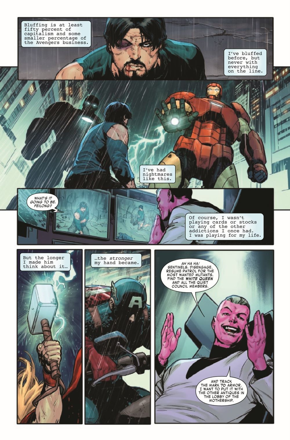 Tony Stark: Black King of the Hellfire Club! Feilong and the Stark Sentinels have beaten Iron Man and robbed him of his armor. But Tony isn't without his resources: his father's membership to the Hellfire Club and his new Stealth Armor!