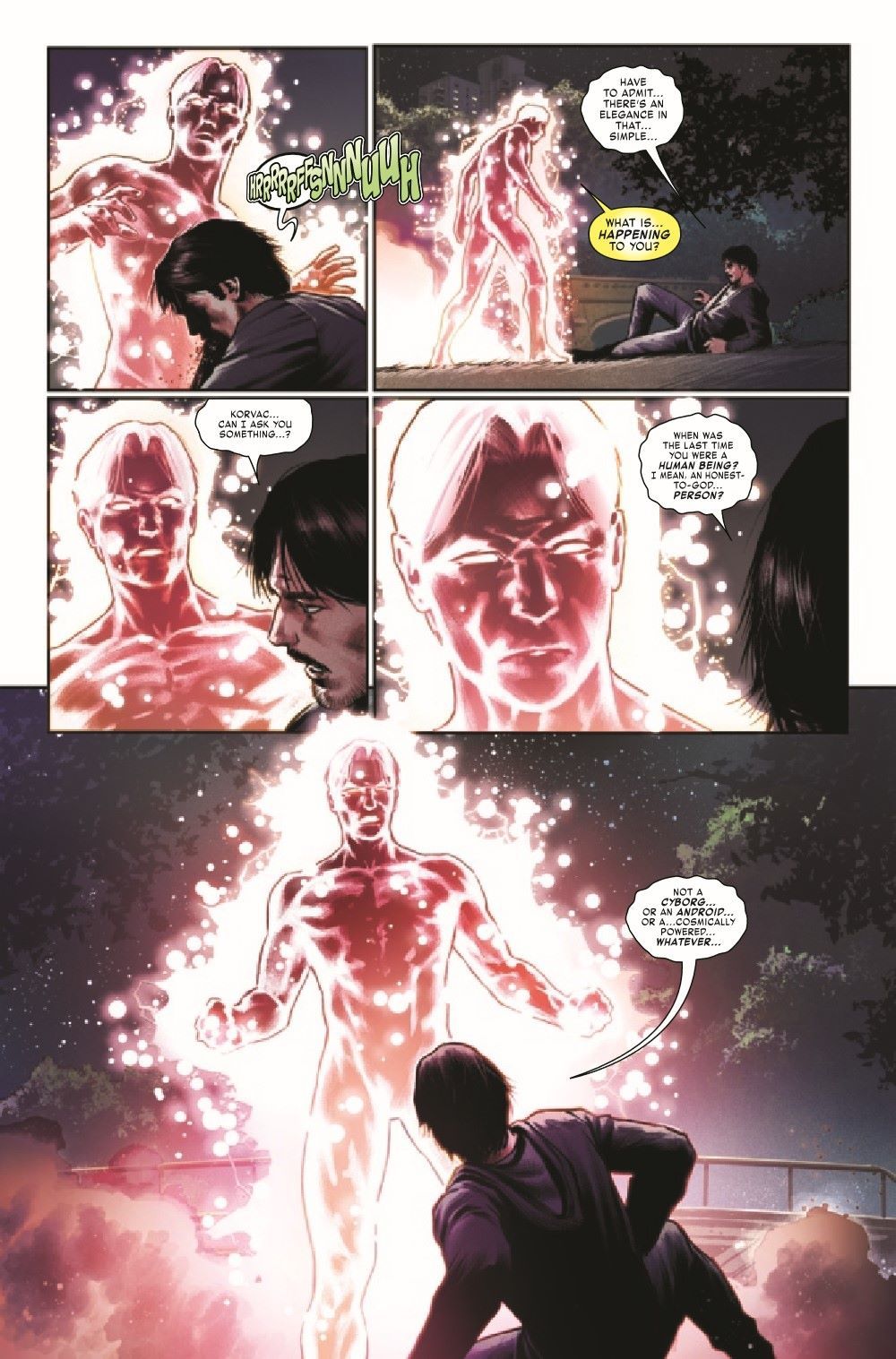 AT LAST, THE STUNNING CONCLUSION OF THE BOOKS OF KORVAC! Tony Stark must face Michael Korvac once again, and once and for all. No cosmic powers, no allies or henchmen, and no...armor? This is the very end of a very long and very rocky journey; Tony's going to have to get by on his own blood, sweat, and tears. For the first time in his life, he's all out of ideas.
