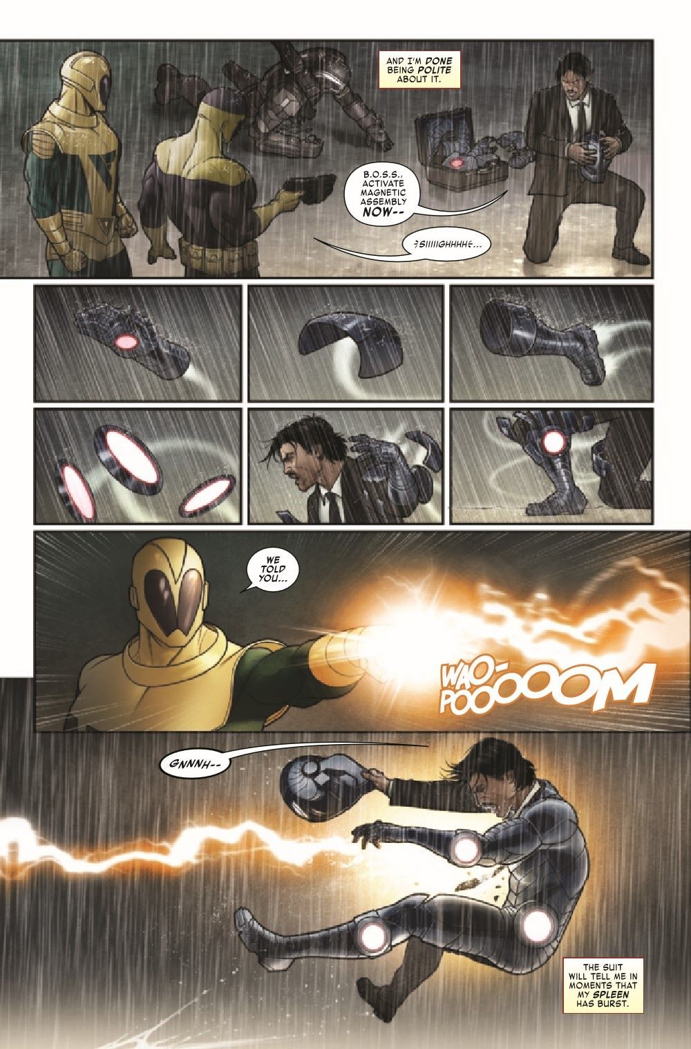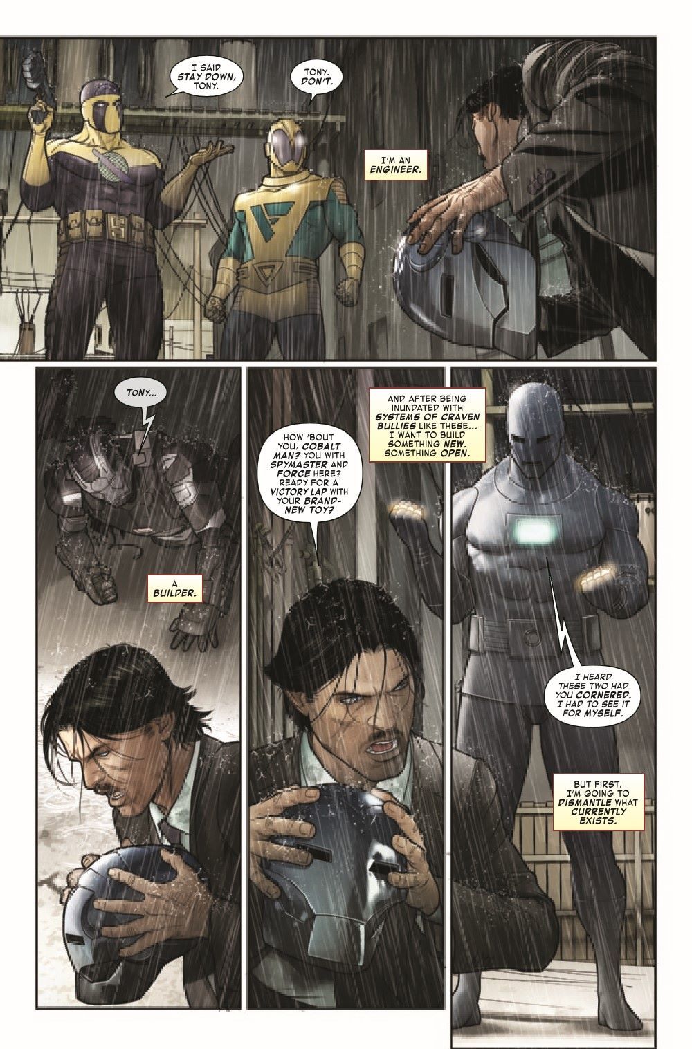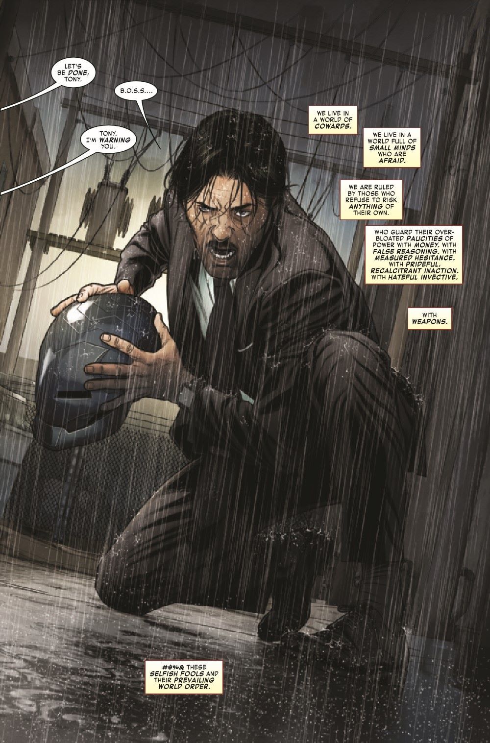 Tony Stark has all but bankrupted himself buying up every dangerous piece of tech he's chased down on the black market network, dismantling it from the inside. As he and Rhodey lock it all up and plan their next steps, Tony and Riri Williams argue over what to do with the most powerful weapon they've recovered…the Mandarin's rings.