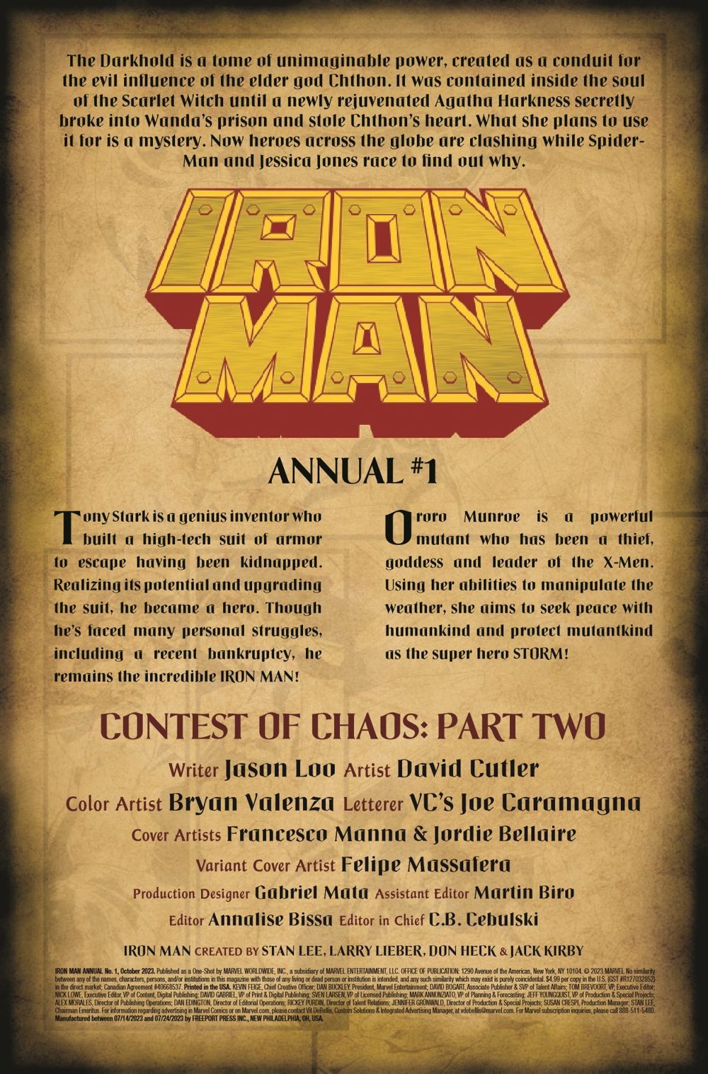 IRON MAN VS. STORM! When the forces of chaos move upon our heroes, the past, present and future come crashing in on them - and only one can emerge victorious! The might of human ingenuity versus the power of the natural universe: IRON MAN battling STORM is a clash of titans you won't want to miss!